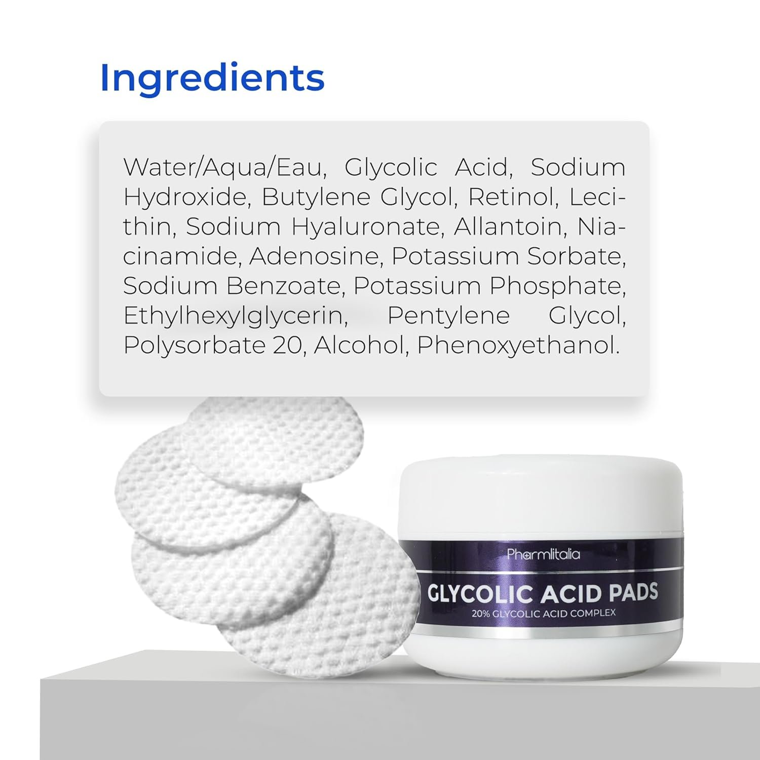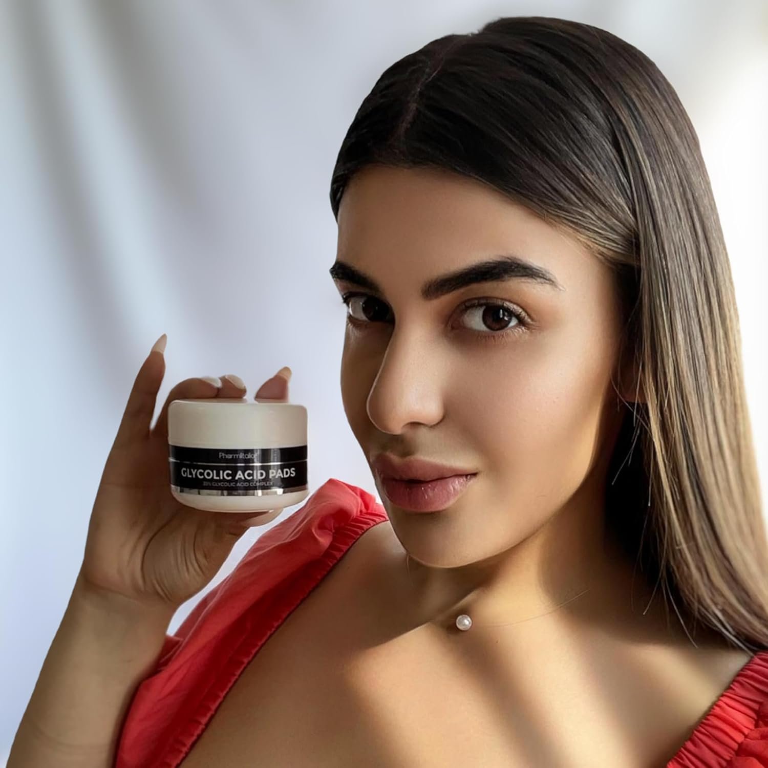 Professional Grade Exfoliation: Our Glycolic Acid Pads 20% offer salon-quality exfoliation in the convenience of your home. Formulated with pharmaceutical-grade glycolic acid, these pads gently remove dead skin cells, dirt, and excess oil, revealing smoother, more radiant skin.