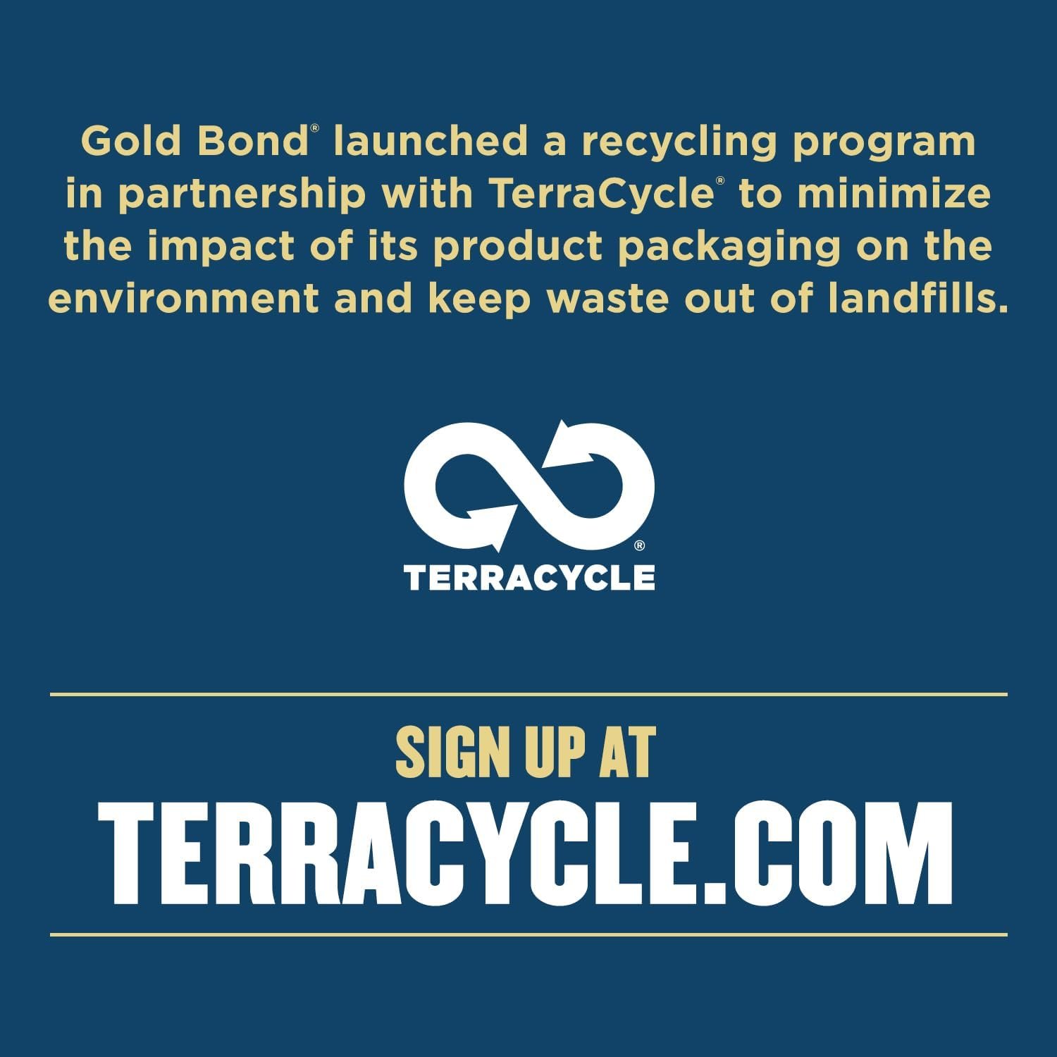 Create a TerraCycle account and start recycling your empty Gold Bond packaging
