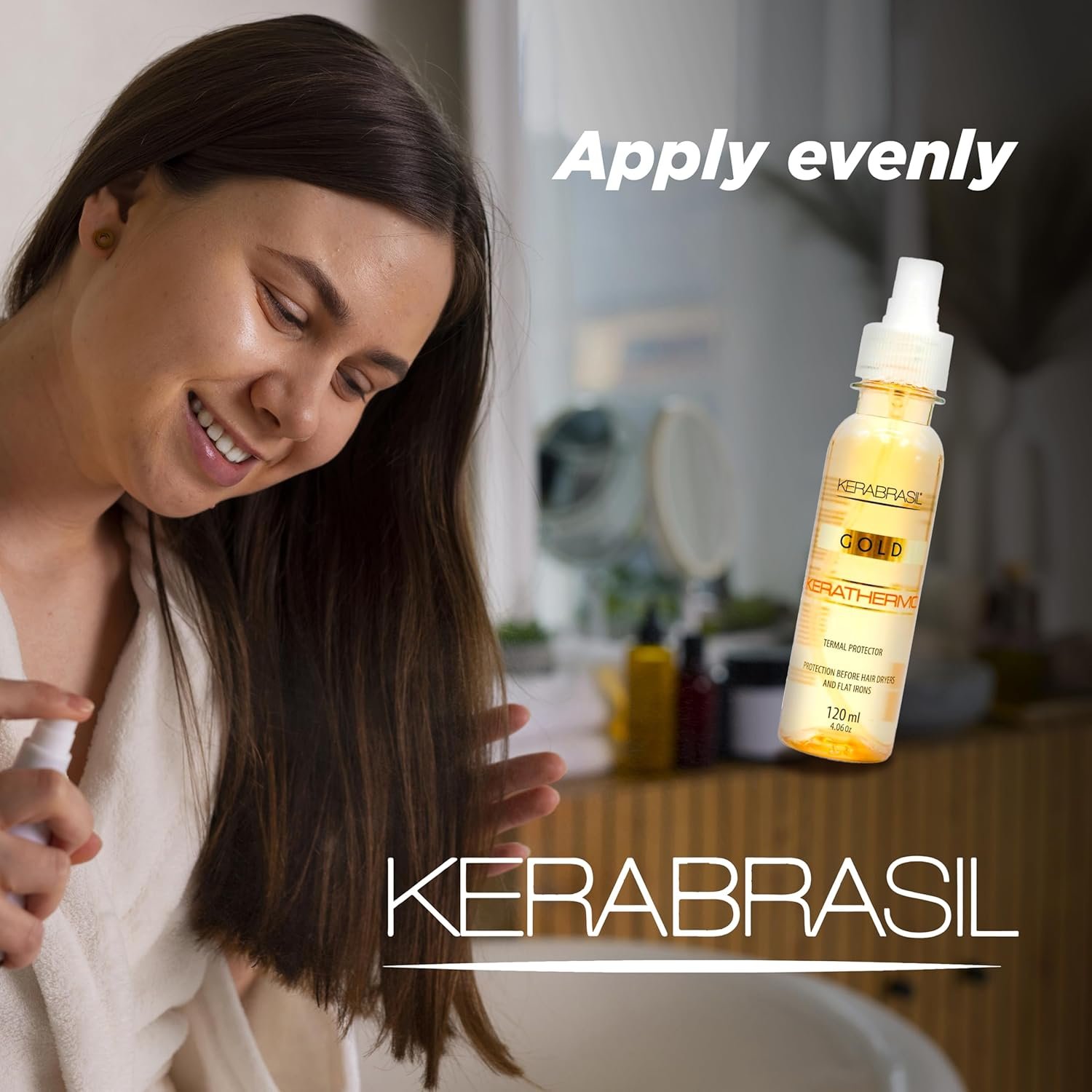 Experience the transformative power of KERABRASIL Kerathermo Gold, your ultimate ally against heat damage. This 4.06 oz thermal protector not only shields your hair from high temperatures but also works to improve its overall health and appearance. Crafted with a potent blend of hydrating and protective ingredients, Kerathermo Gold deeply nourishes each strand, fortifying the hair from within. Its advanced formula helps to distribute heat more evenly during styling, minimizing heat exposure and maintaining the integrity of your hair fibers. Perfect for everyday styling, this product reduces frizz, enhances shine, and leaves your hair feeling incredibly soft and full of life. It’s an essential step in your styling routine, ensuring that your hair remains beautiful and healthy, no matter how often you style it. Usage Instructions: Apply a small amount to damp hair before using any heat-styling tools. Distribute evenly focusing on mid-lengths to ends. Style as usual. Do not rinse out. Embrace the beauty of well-protected, vibrant, and healthy hair with KERABRASIL Kerathermo Gold. Take the first step towards healthier styling!