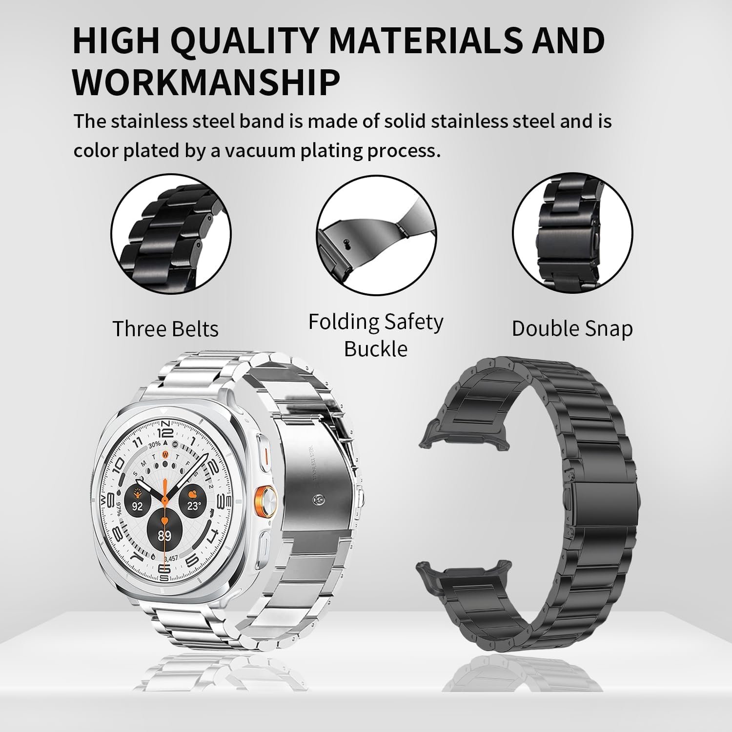 ✅【Advanced Craftsmanship and Material】 GOLDTOLUCK Compatible with Samsung Galaxy Watch 7 47mm Ultra band are all made of high-grade solid stainless steel, metal wire drawing and smooth surface technology, professional vacuum plating technology, design and aesthetics take every detail into consideration. Luxurious, high hardness, corrosion resistance, abrasion resistance, and comfortable hand feeling.