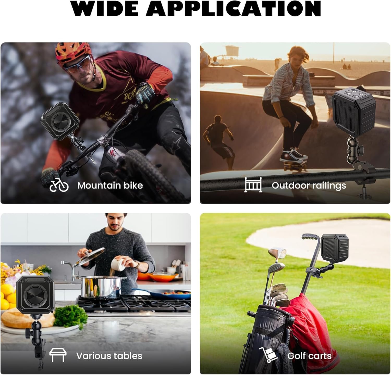 [Ultimate Convenience with a Golf Speaker]: This portable speaker comes complete with a built-in super strong mount and a detachable lanyard, making it easy to carry and attach to golf carts, bikes, scooters, basketball posts, or clip to golf bags, backpacks, strollers, and more. It’s the perfect choice for golf cart speakers and outdoor Bluetooth speakers, ensuring you can enjoy your music wherever you go.