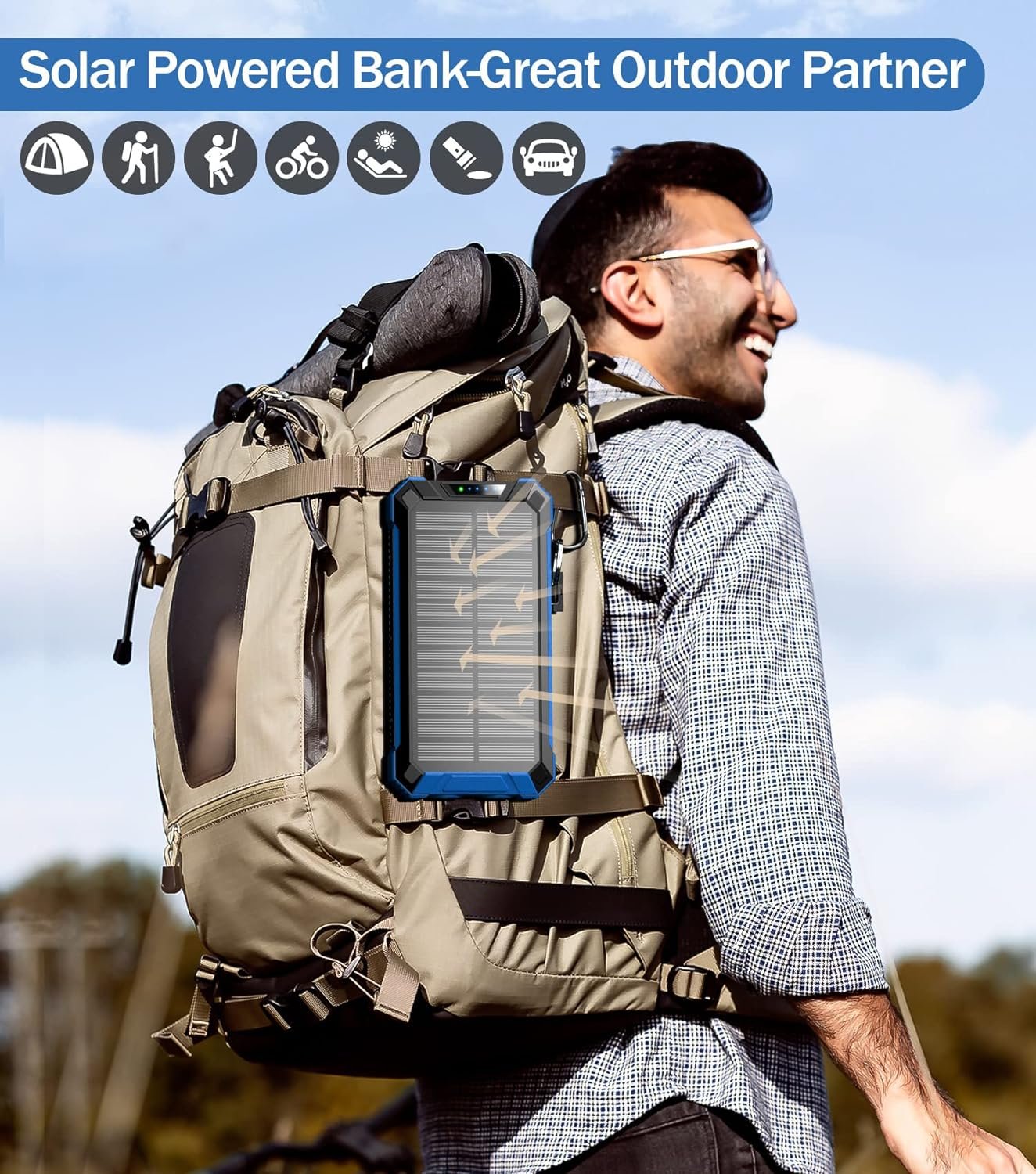 [Sturdy&Durable Design for Outdoor] This solar battery pack is well made to be Waterproof/Shockproof/Dust-proof, which can withstand the harsh environment outdoors. It’s equipped with Dual super bright LED lights, a Must-Have tool for outdoor activities and home emergencies.