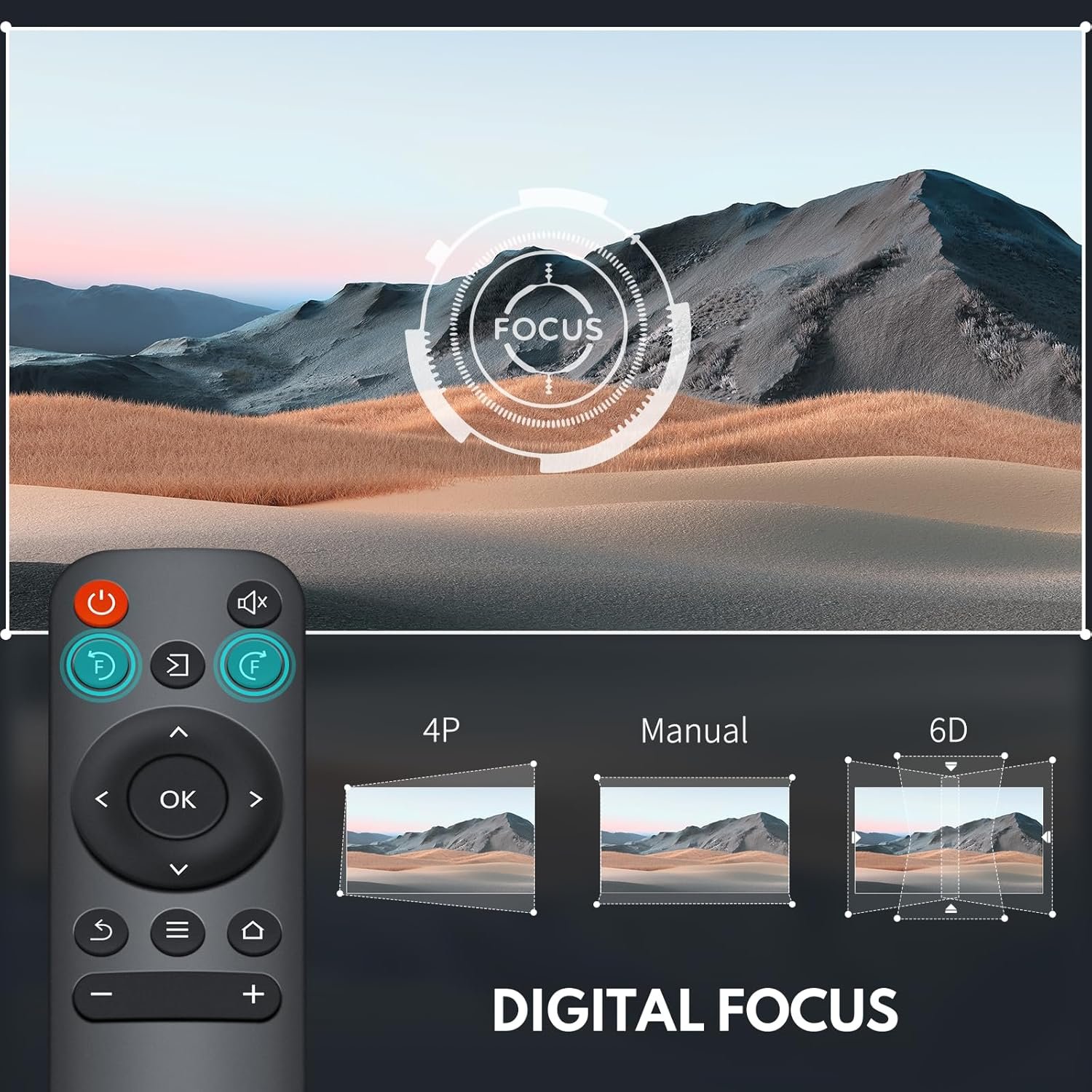 4P/4D Keystone Correction: Placing customer needs first, we design multiple image setting so as to meet different projection direction of our customer. You don’t need to move the home theater projector to adjust the size of image. Zoom function allows you shrunk the image size from 100%-50% at the same place. Whats more, newest 4 point keystone correction allows you customize image size and direction.4 corners of the picture can be adjusted separately