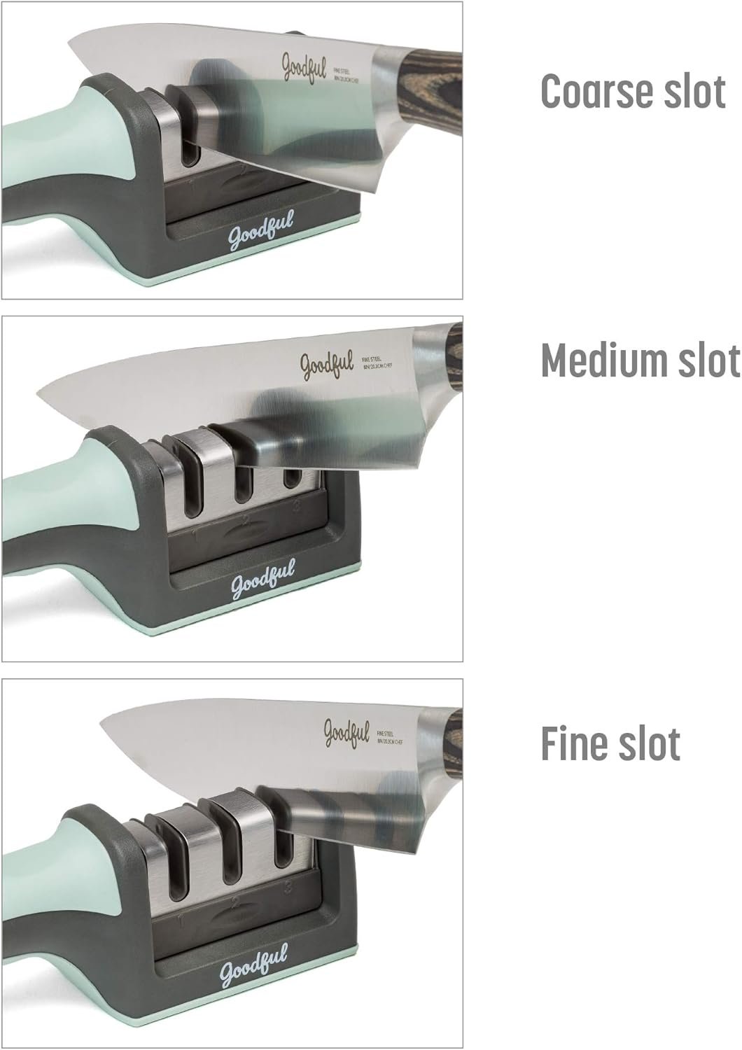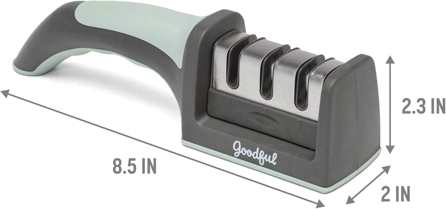 THREE’S COMPANY: 3 stage knife sharpener to make your dull knives sharp again and maintain the edge on already sharpened knives