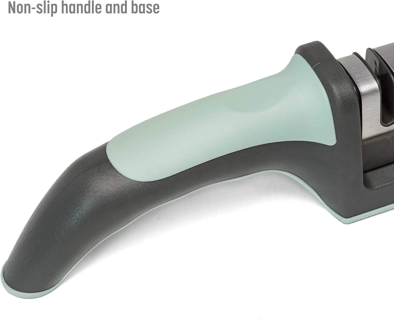 SAFETY (AND COMFORT) FIRST: Soft grip finger molds help you grip the knife sharpener comfortably while the non-slip base keeps this sharpener in place during use.