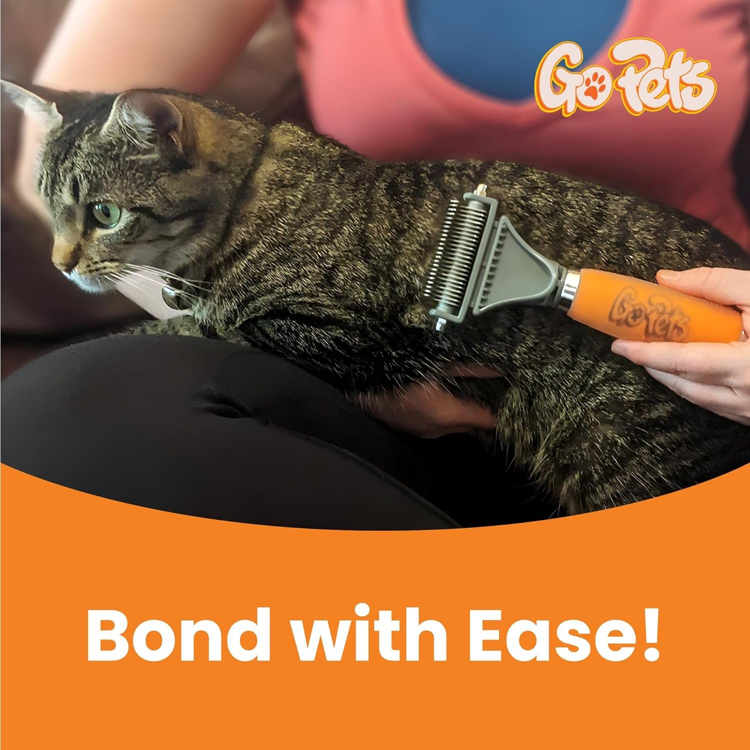 GoPets 2-Sided Deshedding & Dematting Comb for Cats, Dog Grooming Brush, Undercoat Brush for Mats, Tangles, & Shedding, Stainless Steel Blades, Ergonomic Handle, Ideal for All Breeds & Coat Types