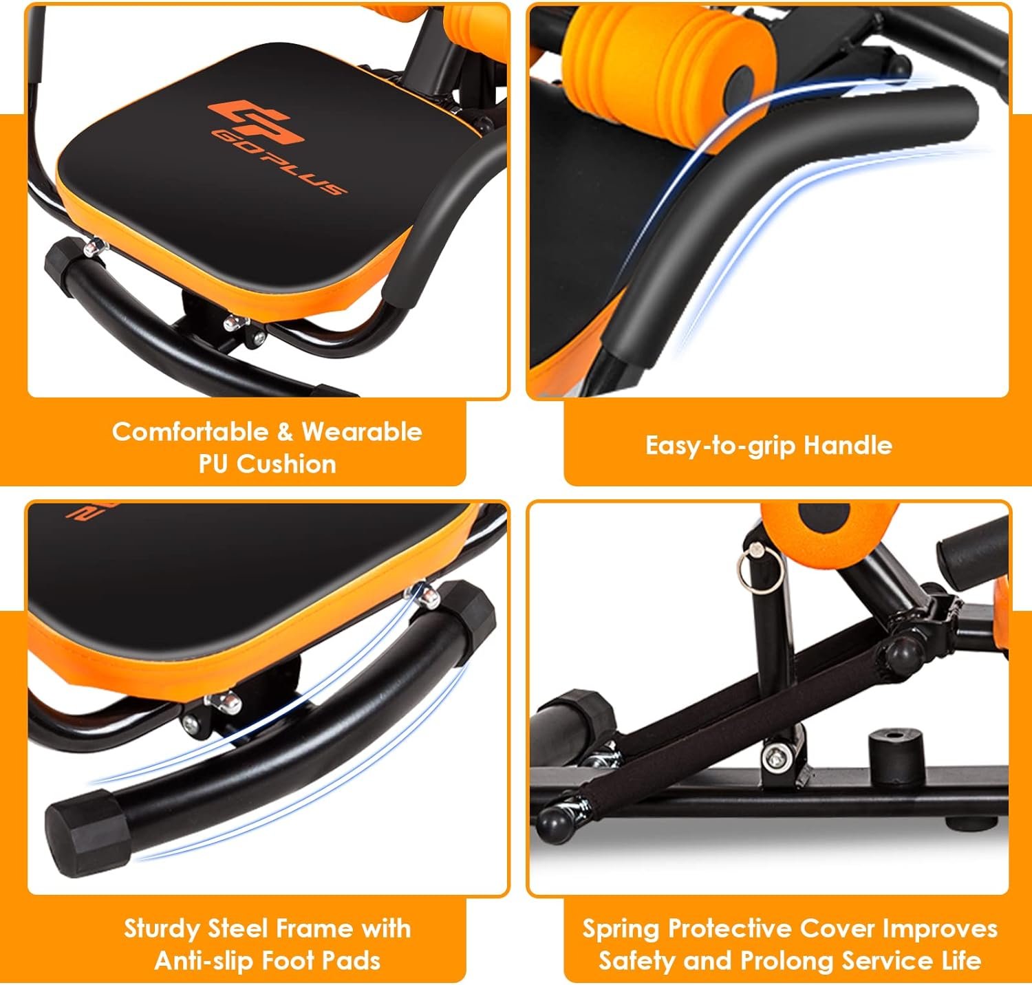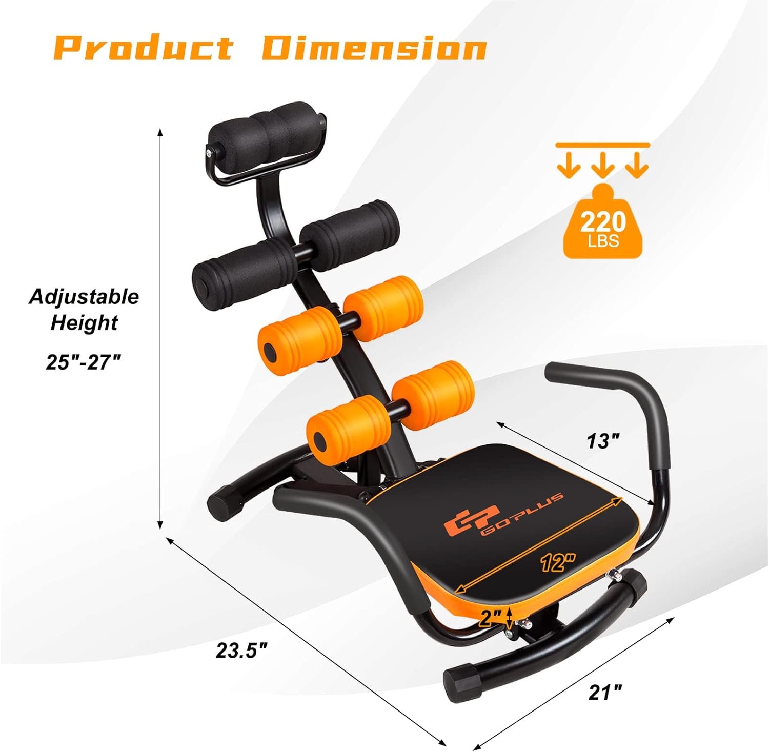 đȘăSturdy and Stable Constructionă Made of heavy-duty iron material, this abdominal crunch twist trainer features solidity and durability. It is solid enough to stand up and support up to 220 lbs, fitting for most adults. The rectangle construction ensures much stability. Also, equipped with a high-quality cushion, this abdominal trainer can serve you for a long time.