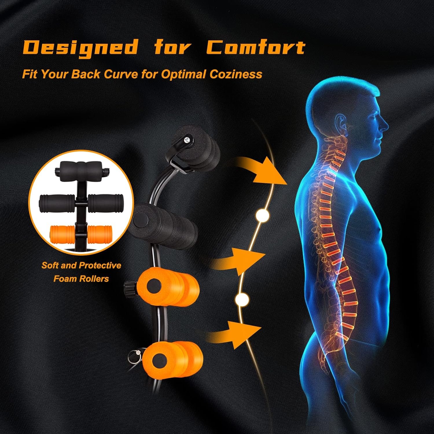 đȘăComfortable Design with Thick Foamă This fitness equipment fits the curve of the human body and cares for your spine and supports your back and neck. The thick round foam can roll while you rock, effectively eliminating the strain on your back and neck. Wide PU leather cushion and cushion-wrapped handle provide you with a comfortable workout experience.