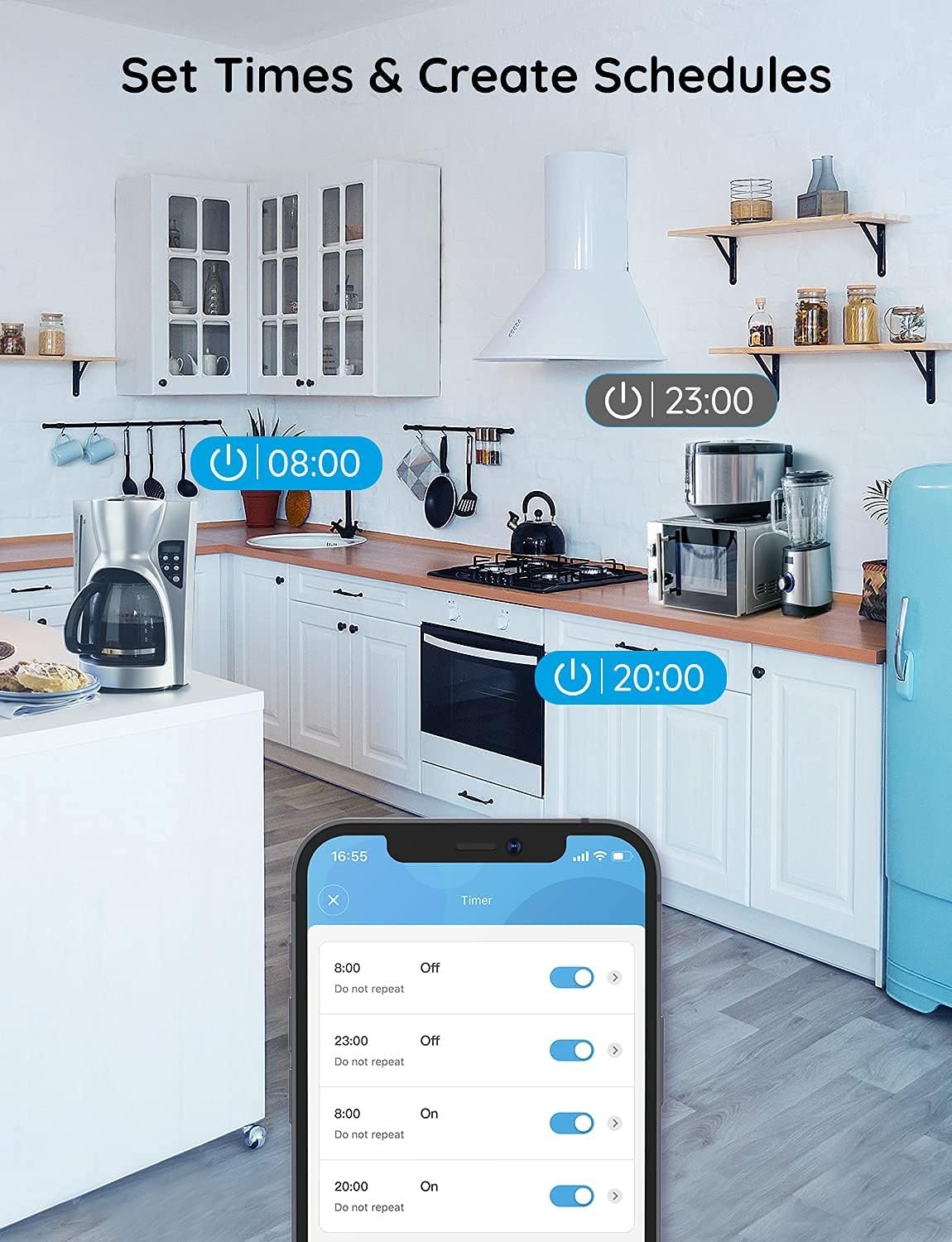 Set Automated Timers: Create customized timers and on/off schedules for all your devices and electronic appliances powered by Smart Plug, helping to save on energy and monthly bills.