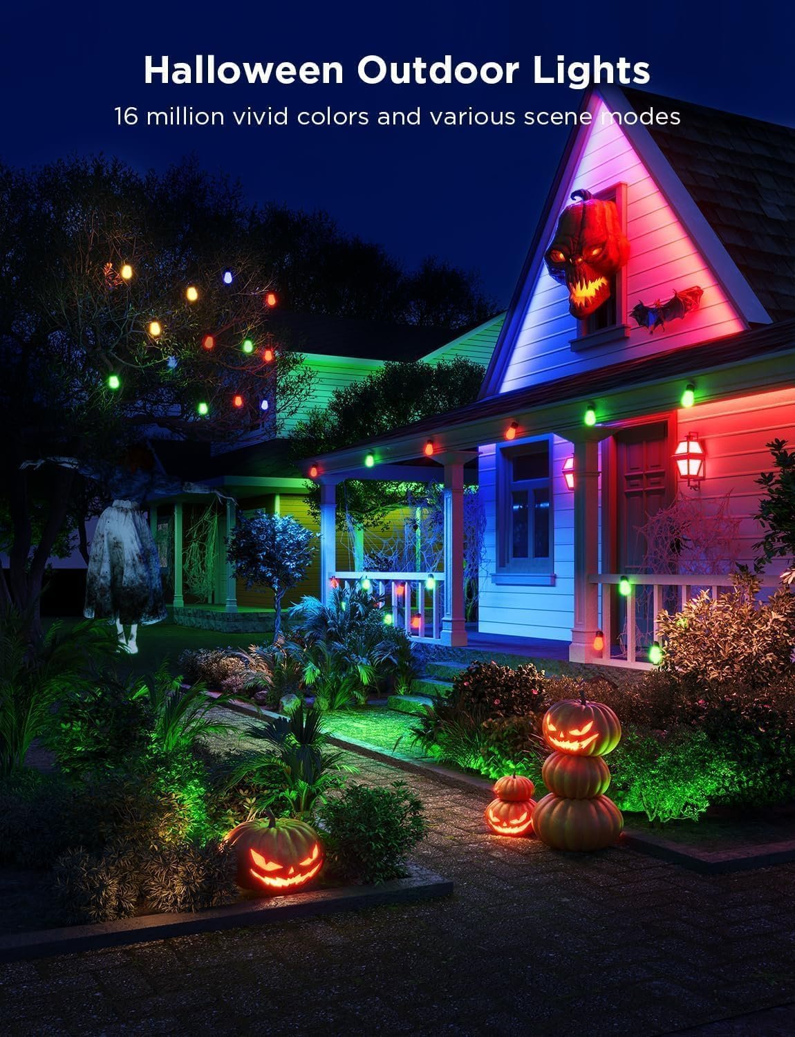 DIY Mode: Personalize the govee outdoor lights lighting effects via the Govee Home app. Choose from 16 million colors and cold or warm white, customize each bulb to display a different color, jazzing up your Halloween decorations.