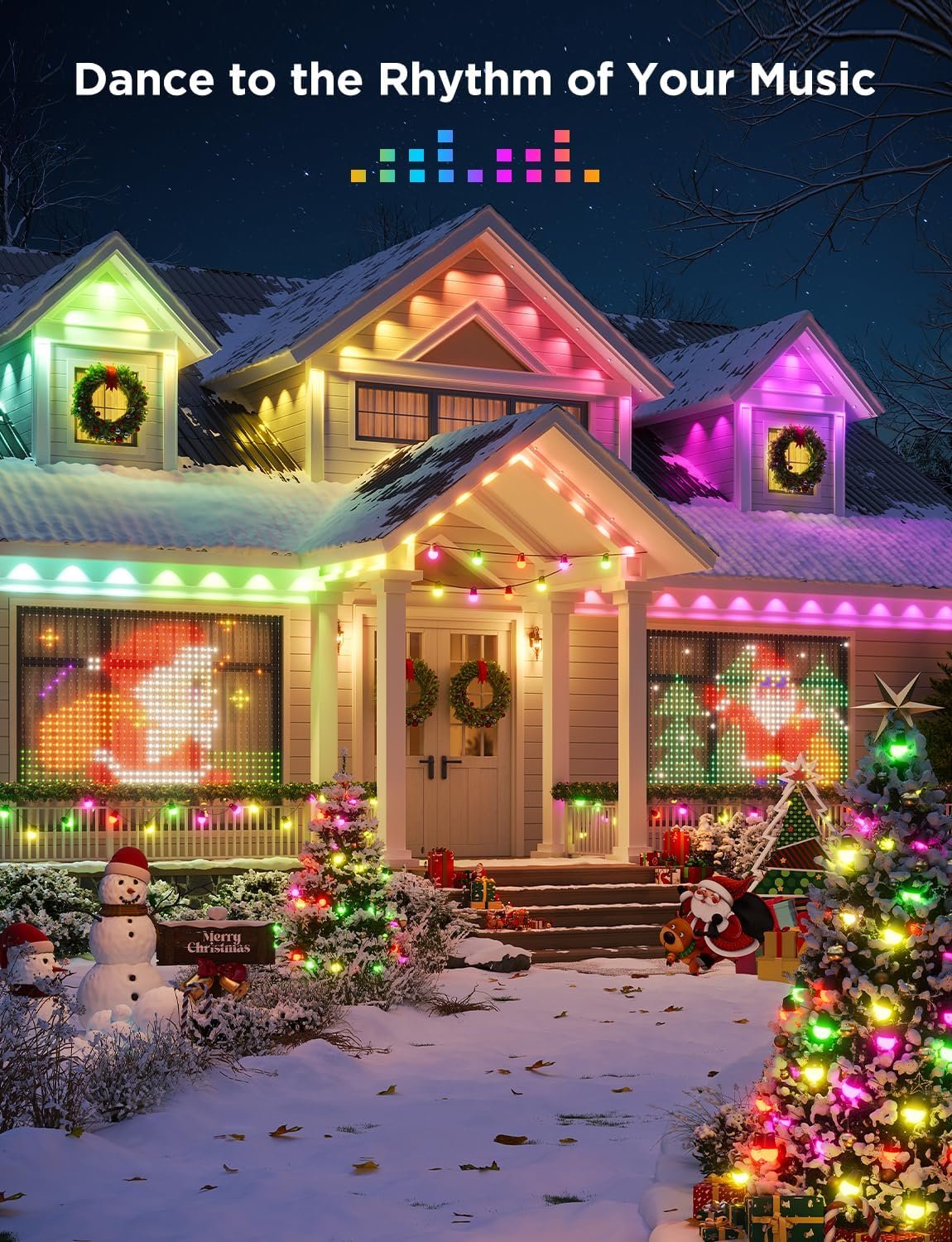 Sync with Music: These smart lights can detect music and audio, matching the lighting effects to the sound to make your outdoor Christmas lights dance with the music. Create your own unique lightshow with a wide range of music modes.