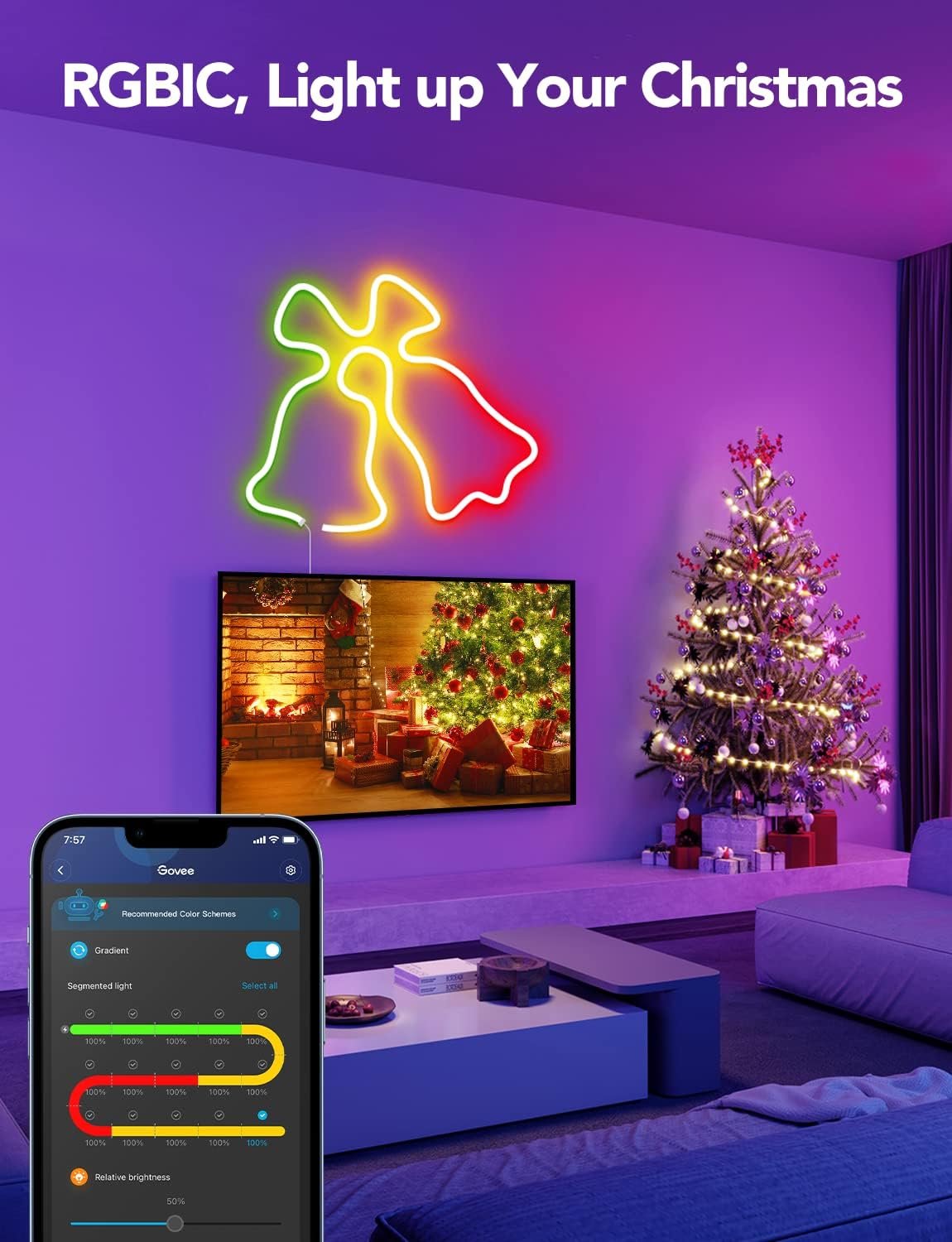 Unique RGBIC Technology: Govee RGBIC technology lets your creativity run wild. Display multiple colors of light simultaneously in a bendable neon rope light. Decorate your home with flowing lighting effects based on nature, holiday and moods.