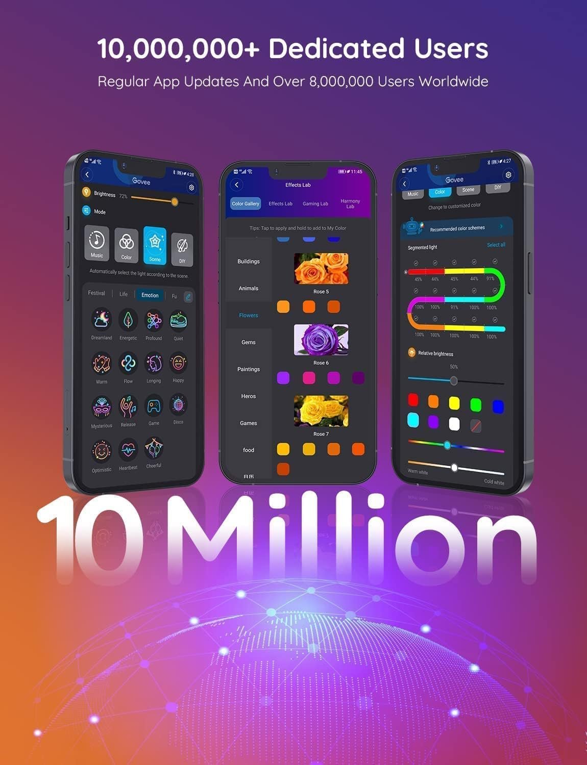 Rich Animated Effects: 64 preset scene modes, 11 music modes, group control with other Govee smart lights. The surface is sprayed with dust-proof paint that is not easy to get dirty. Easily apply it to wall decor with the included 20 clips and 20 screws.
