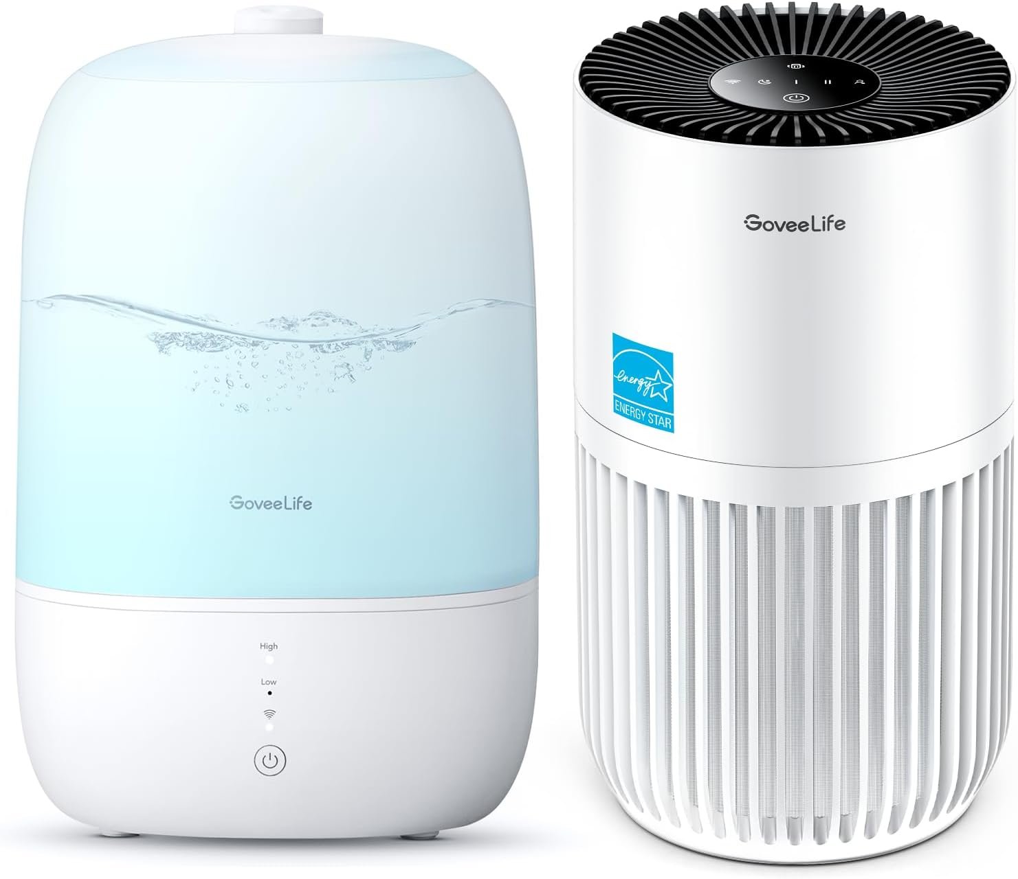 GoveeLife Smart 3L Top Fill Cool Mist Humidifiers Bundle with Smart Mini Air Purifier for Bedroom