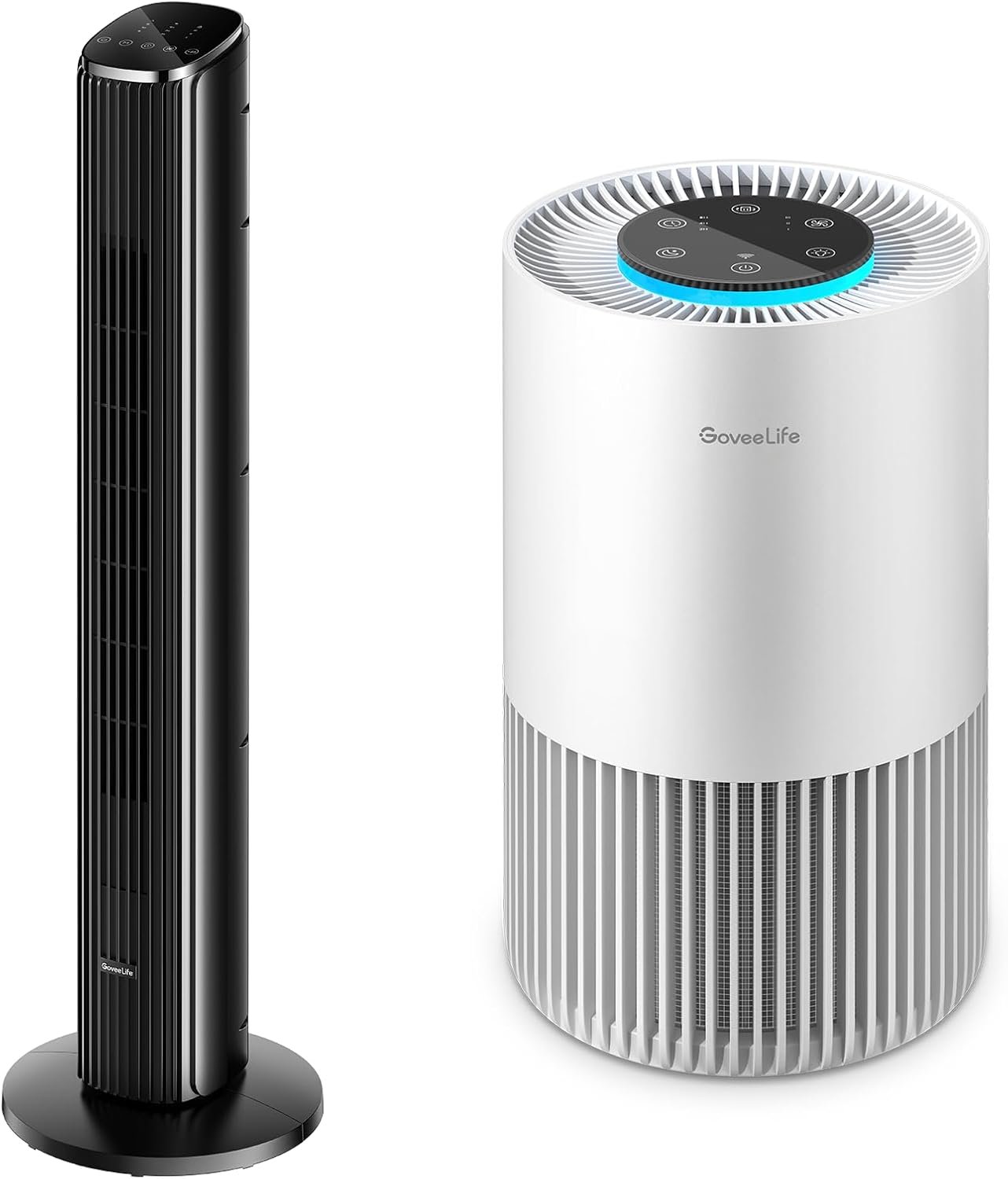 GoveeLife Smart Air Purifiers for Bedroom, with WiFi Alexa Control, HEPA 24dB Quiet Air Purifier with Fragrance Sponge, RGB Night Light Bundle with GoveeLife 36 Inch Tower Fan