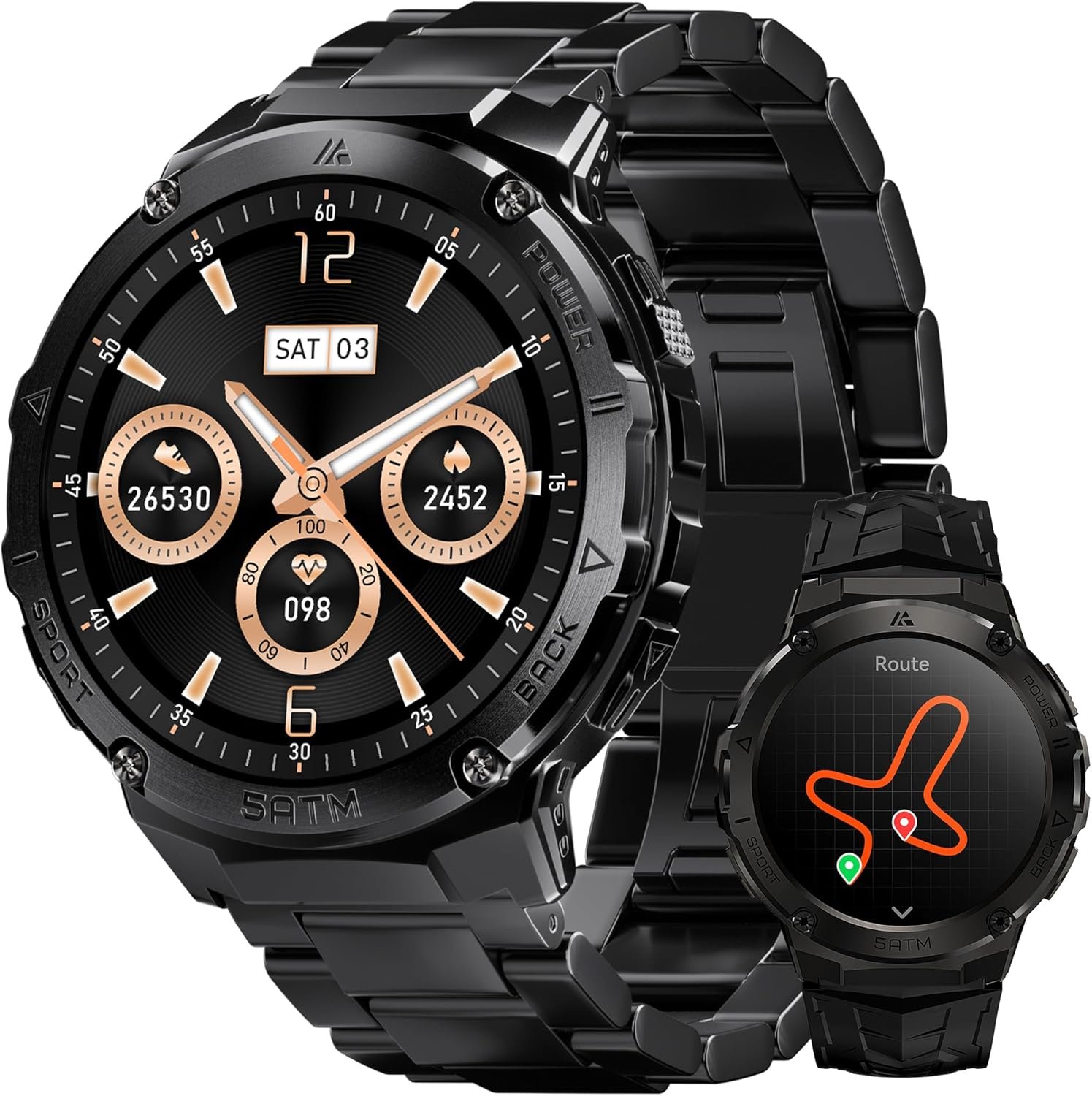 ⌚BUILT-IN GPS & 6 SATELLITE POSITIONING SYSTEMS – HOTMIFIT T3E smart watches for men Built-in GPS, The military-grade dual-band and 6-satellite system allows fast positioning in (8-45 seconds), 2-3 times faster than normal single-band 4 satellite positioning smartwatches, The tracker watch also includes an internal compass, altitude pressurization, and altimeter sensors that show your current position, altitude, and air pressure.