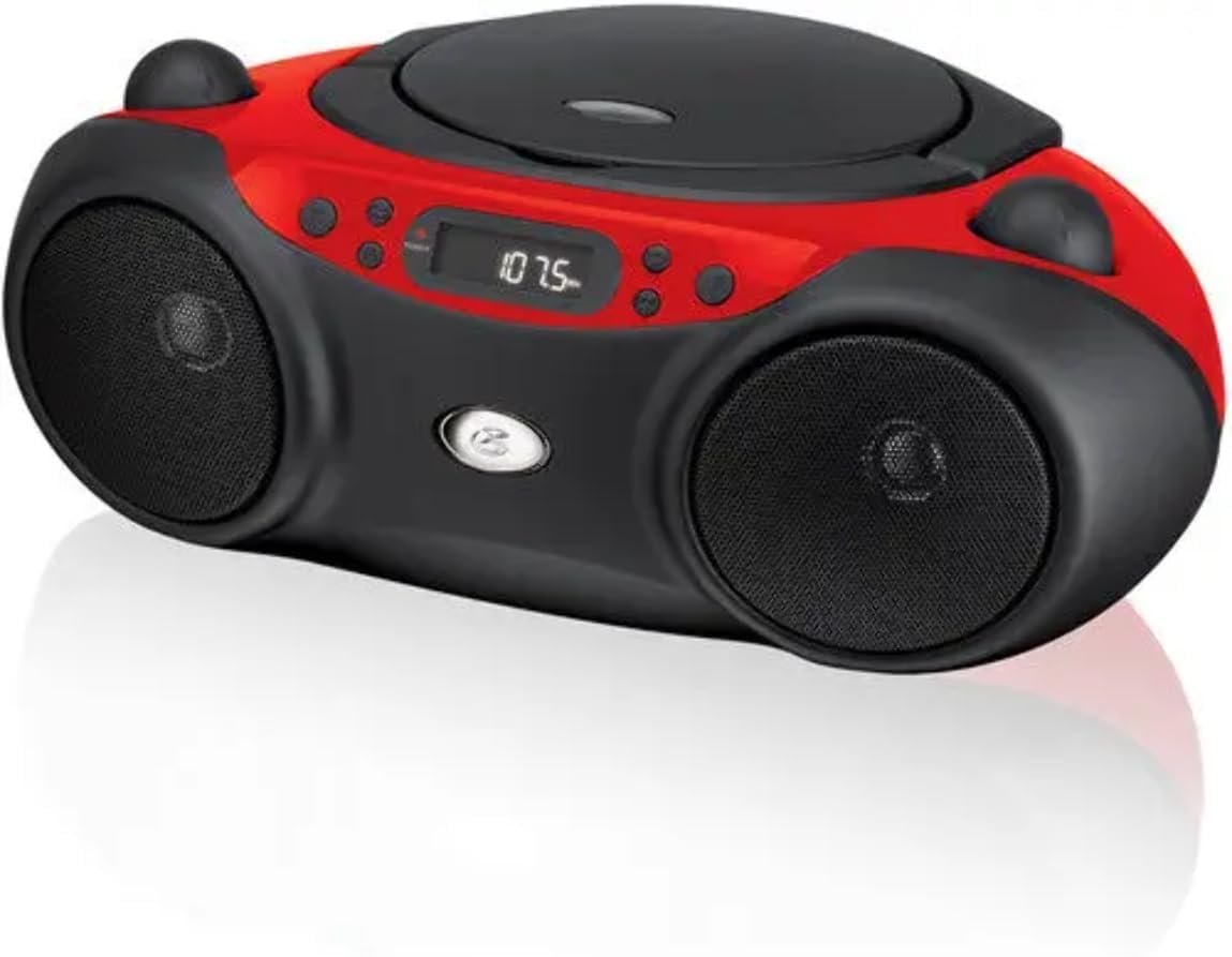 Listen to CDs and AM/FM radio wiht this classic boombox gets a sporty makeover. All the same great features you love, now with a sportier look. The negative LCD display with backlight is easy to read so you can find that perfect song. Plus the AC power input and DC battery power let you take your music on-the-go.