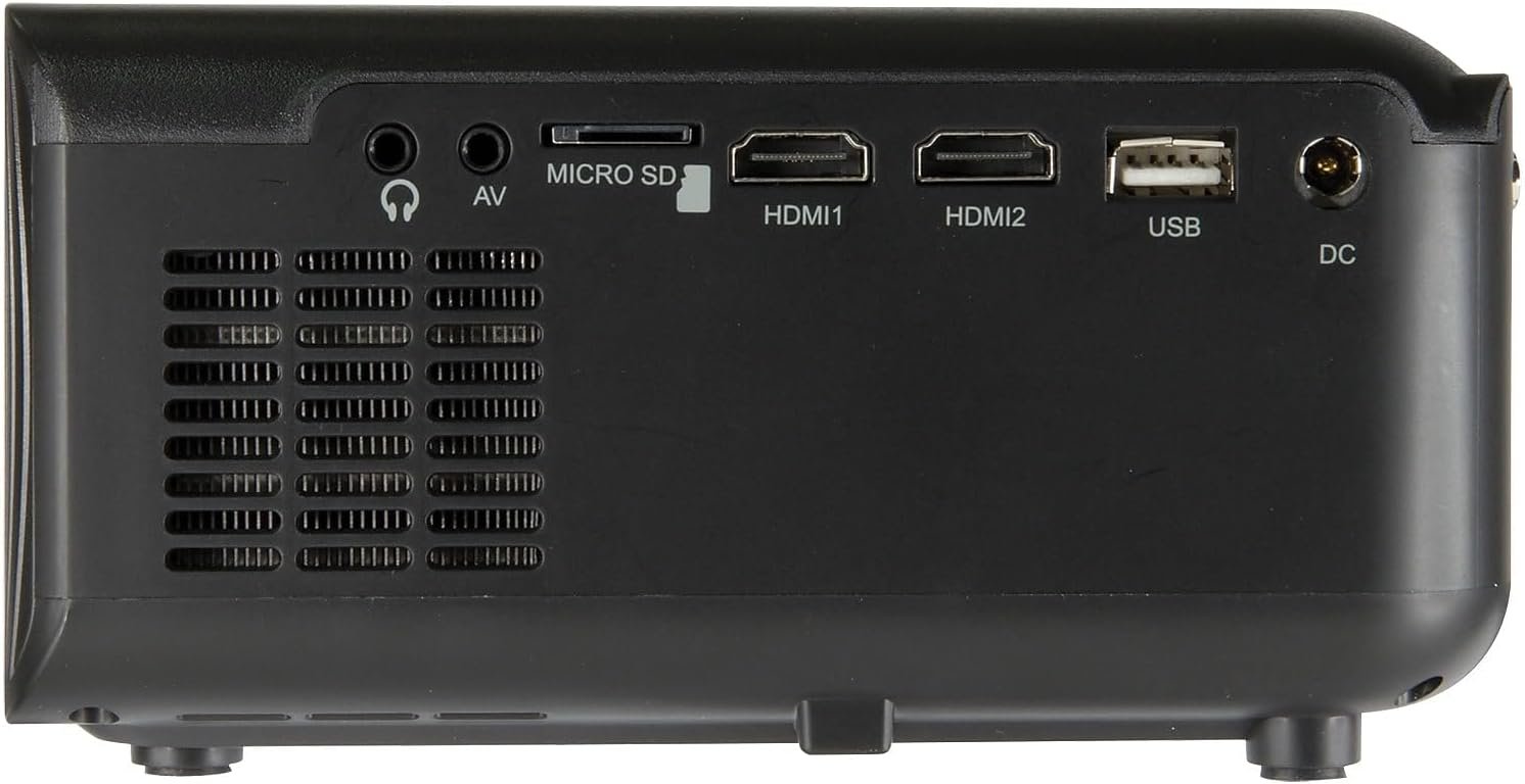 Turn any space into entertainment central with the GPX Mini Projector. Project your favorite movies, games and photos up to a 150″ screen size (1280 x 720 native resolution) with 2 HDMI inputs, an SD card reader, a USB port, and a VGA input. Easily adjust the picture (Supports: 480p, 720p, 1080i, 1080p) for the best viewing angle with the focus adjustment (Aspect ratio: 16:9) and use the included remote to control the projector from a distance (Display distance; 3.3-16.4ft). Connect your speakers to the audio out or use the built in speaker to complete the scene.