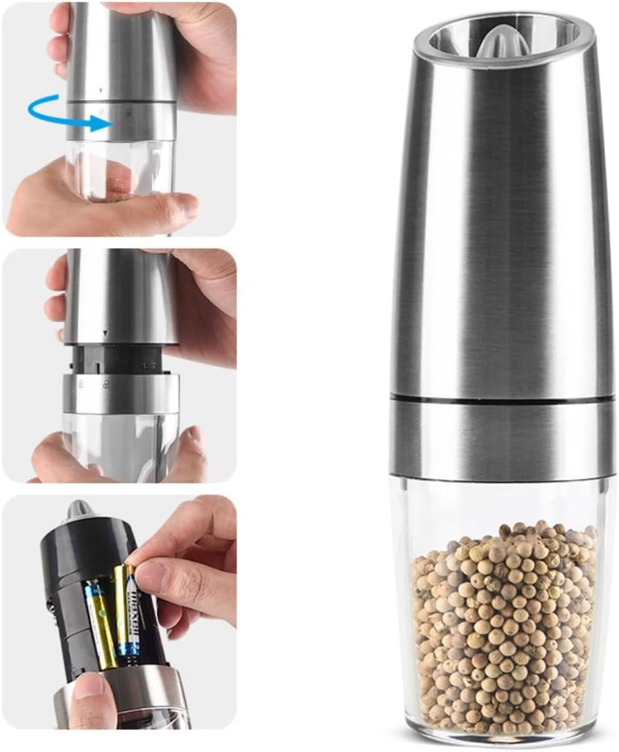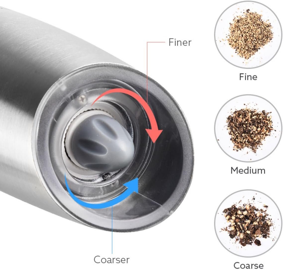 Automatic and Convenient: With just a simple tilt of the grinder, the gravity electric system automatically grinds and dispenses salt and pepper, making seasoning your dishes effortless and efficient.