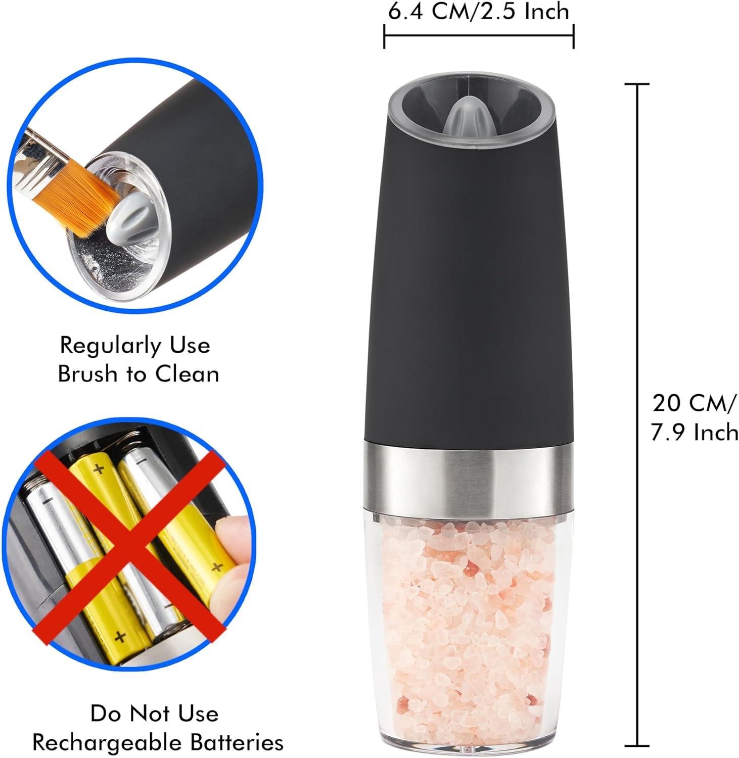 Be the first to review “Gravity Electric Pepper and Salt Grinder Set, Battery Operated Pepper Mill with Blue LED Light, One Hand Operation, Flip to Grind, Adjustable Coarseness”