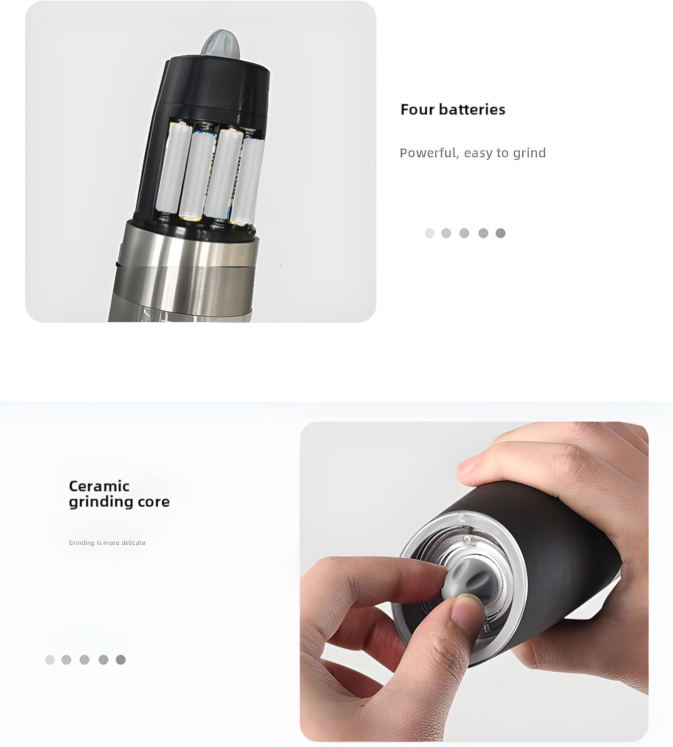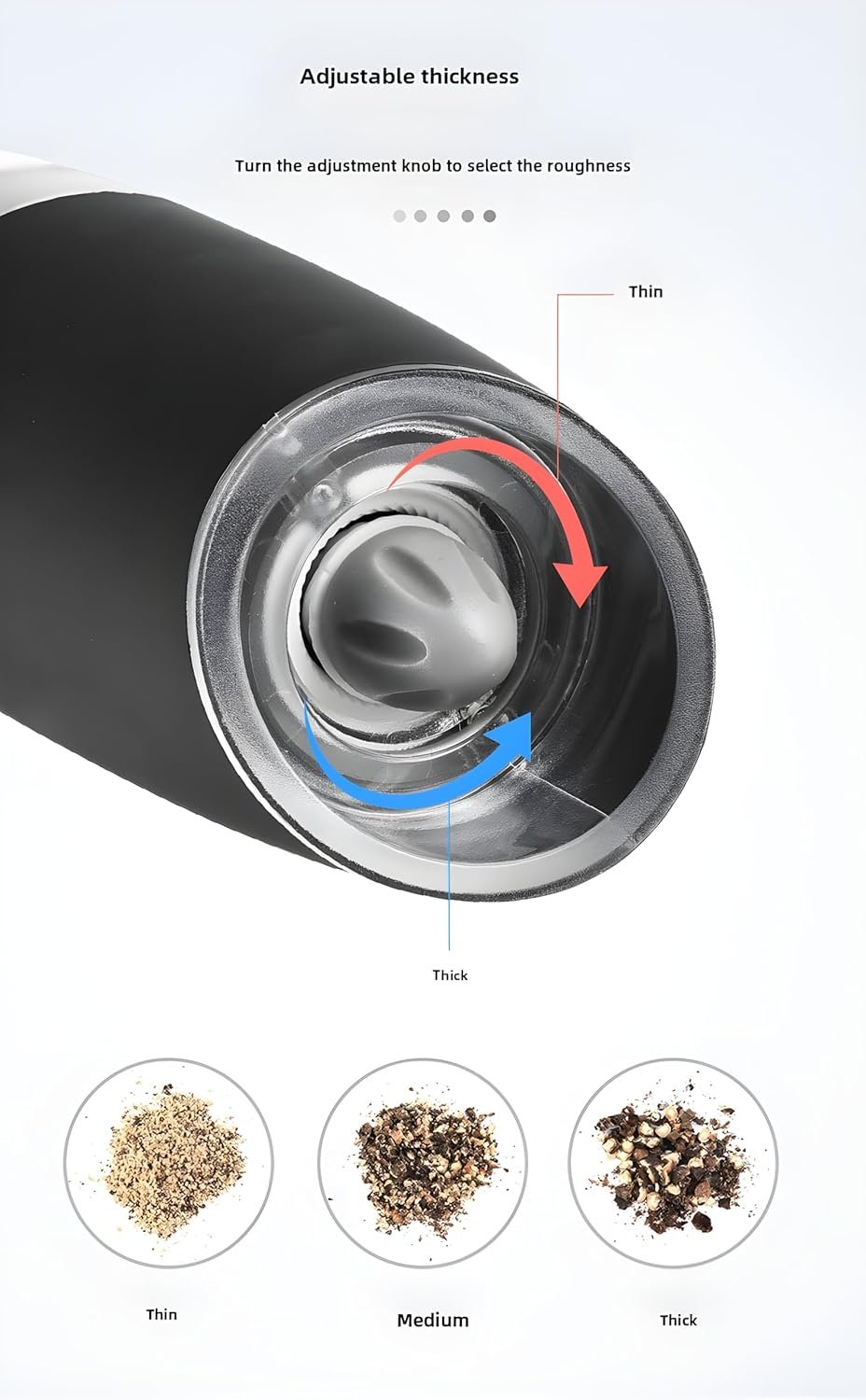 Adjustable Grind: Easily adjust the coarseness level from fine to coarse with a simple twist of the knob on top. The battery-operated ceramic grinding mechanism ensures smooth, one-handed grinding every time. Automatic salt and pepper grinder kits are more convenient than traditional manual grinder kits. This Makes It a Great Choice for Busy Meal Preparation, as well as for children, the elderly, and those with arthritis. With features that improve your quality of life