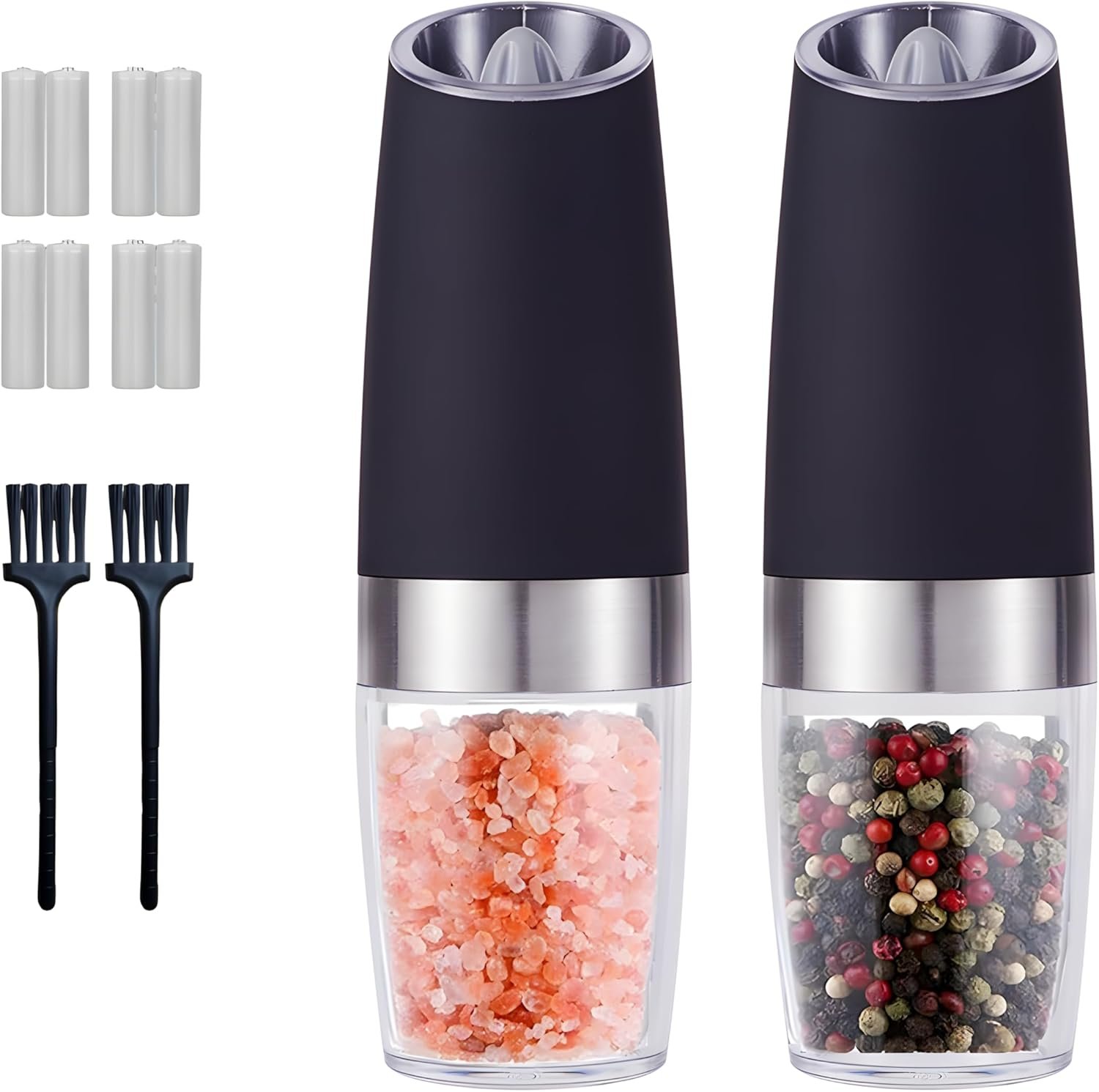 Convenient Set: This product includes 2 stainless steel salt and pepper grinders, 8 AAA batteries, and 2 cleaning brushes for easy maintenance.