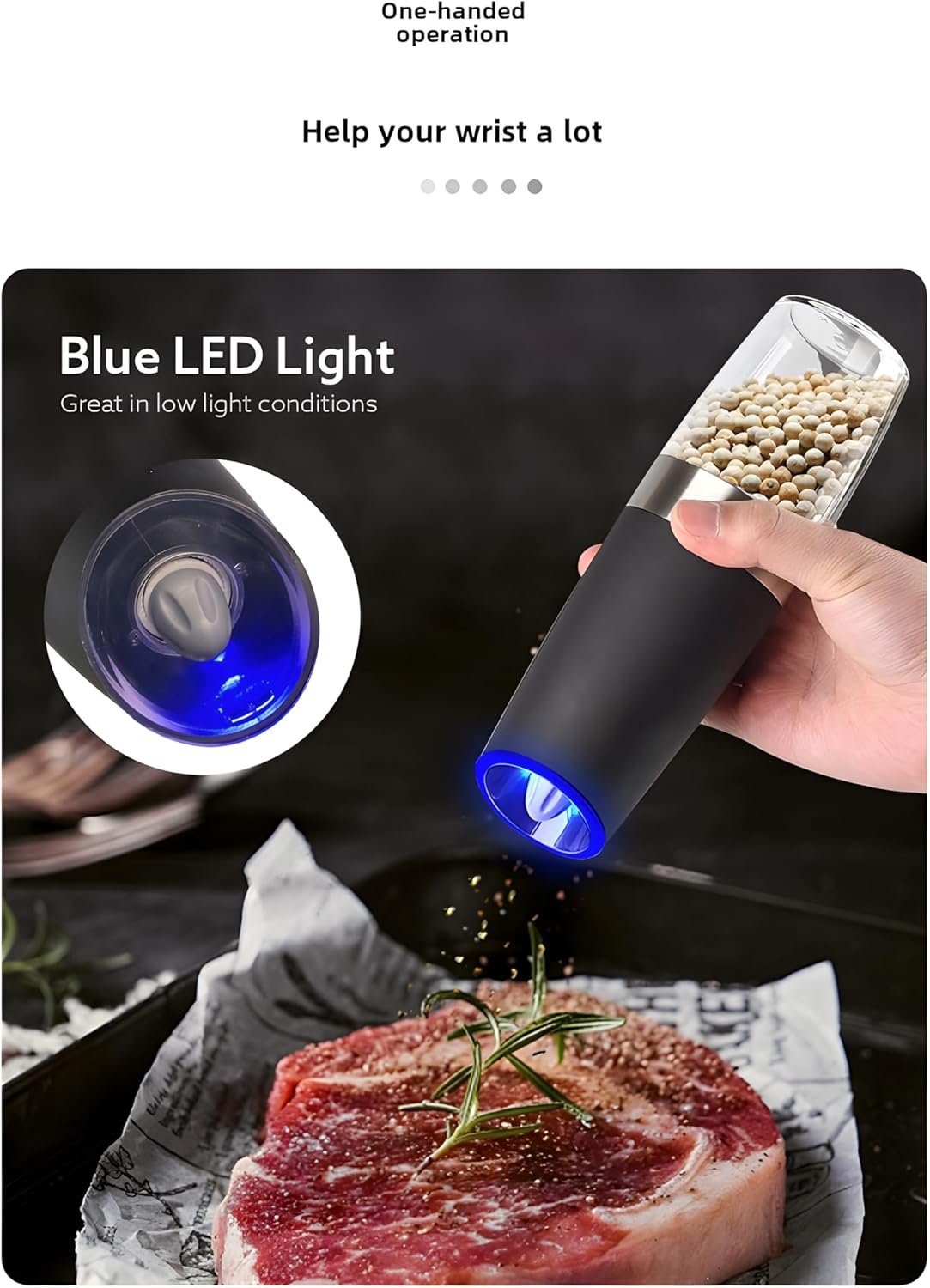 Hassle-Free Cleaning: Just a quick brush and it’s good to go! Note: Avoid using water to wash to protect the motor from damage.Our electric grinder features a built-in blue LED light that not only adds a touch of elegance to your kitchen but also illuminates your seasonings, ensuring you never over-season your dishes
