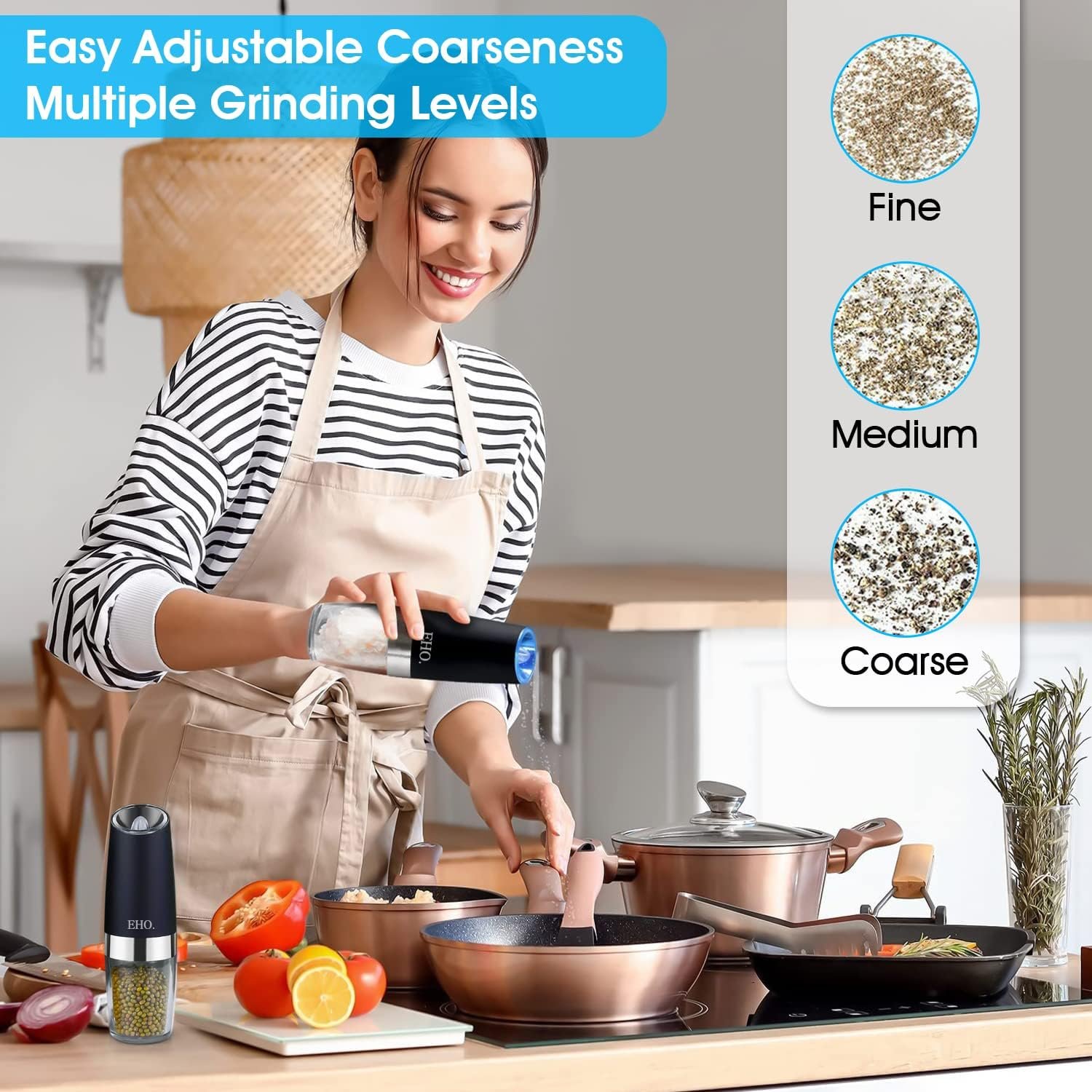 ☑️【Lifetime Warranty】: At EHO. we’re committed to providing you with excellent and life-changing kitchen and dining accessories that always satisfies our customers. To see how serious we really are about that commitment, we back our automatic salt and pepper grinder sets with a LIFETIME WARRANTY. With nothing to worry about, you have every good reason to order your salt and pepper set today!