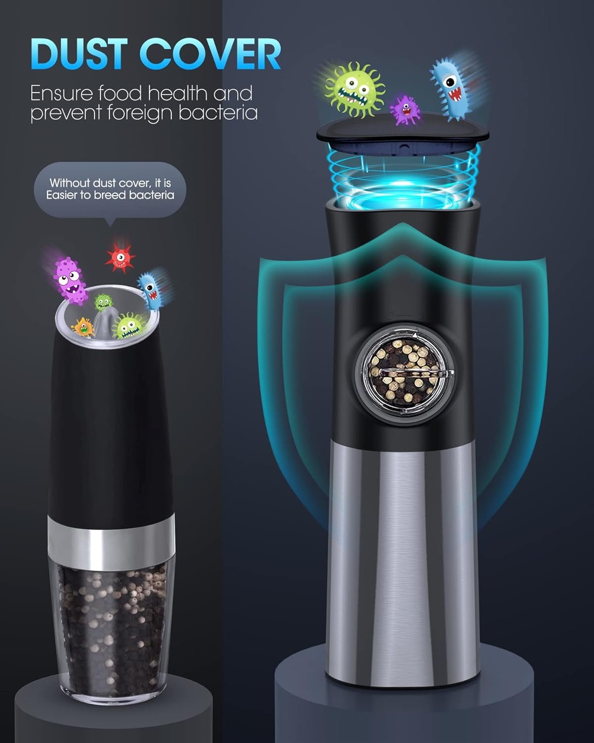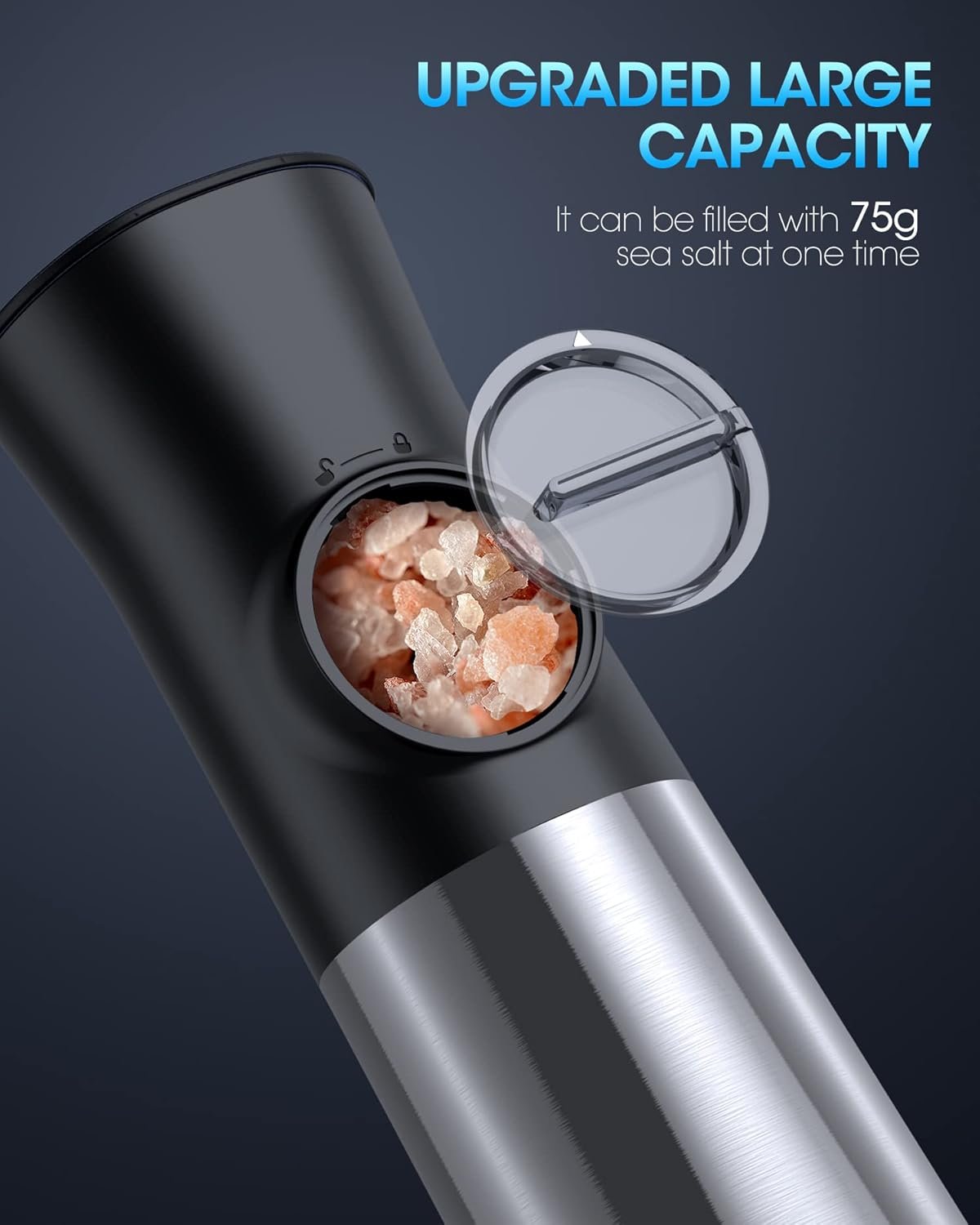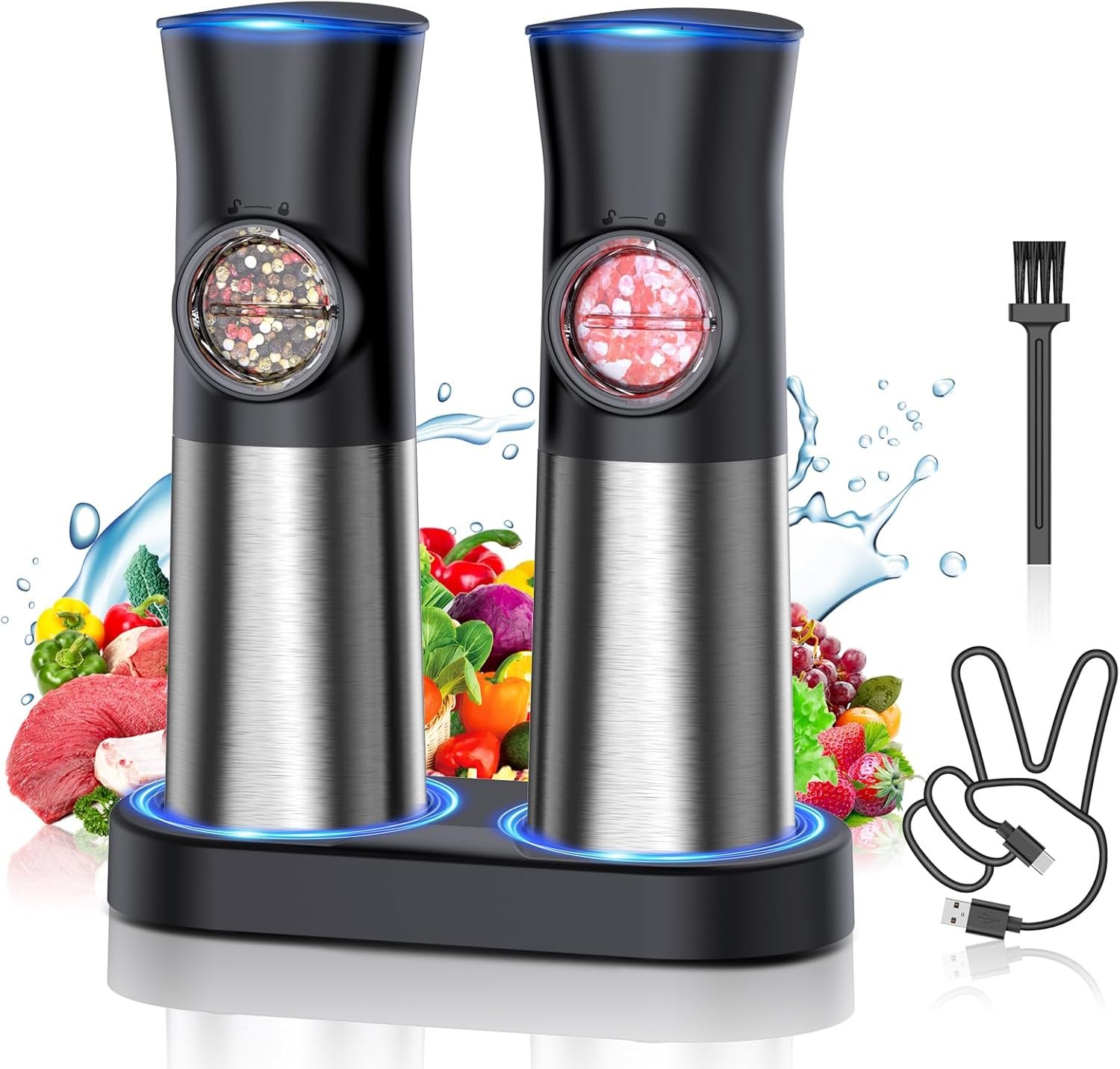Gravity Electric Salt and Pepper Grinder Set – USB Rechargeable Automatic Pepper Mill Grinder