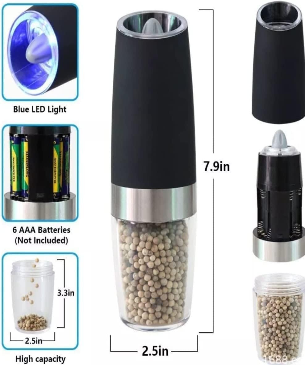 BATTERY POWERED & UNIQUE DESIGN – Our upgraded battery powered salt and pepper grinder set avoids the hassle of charging, which is different from other automatic salt and pepper grinder sets. 6 AA Batteries required (not included)