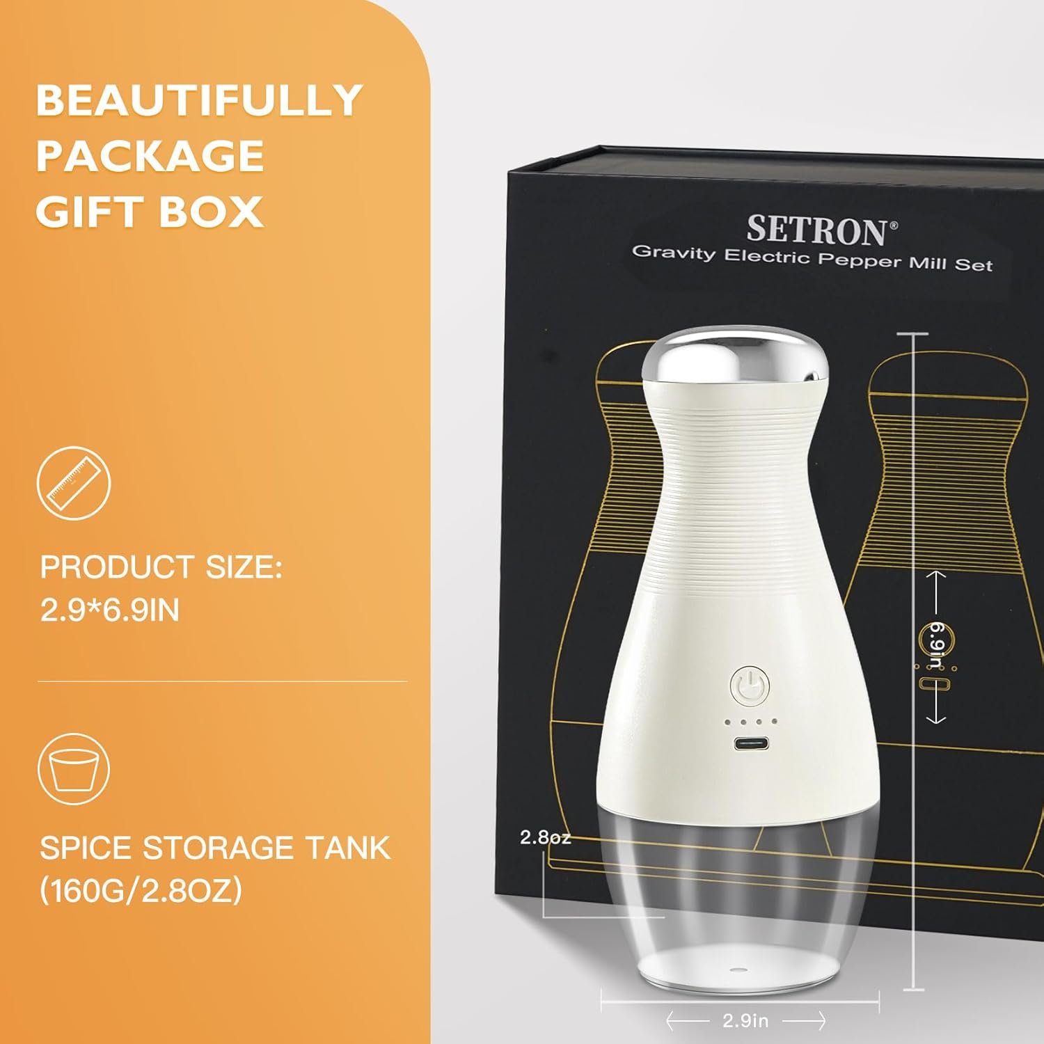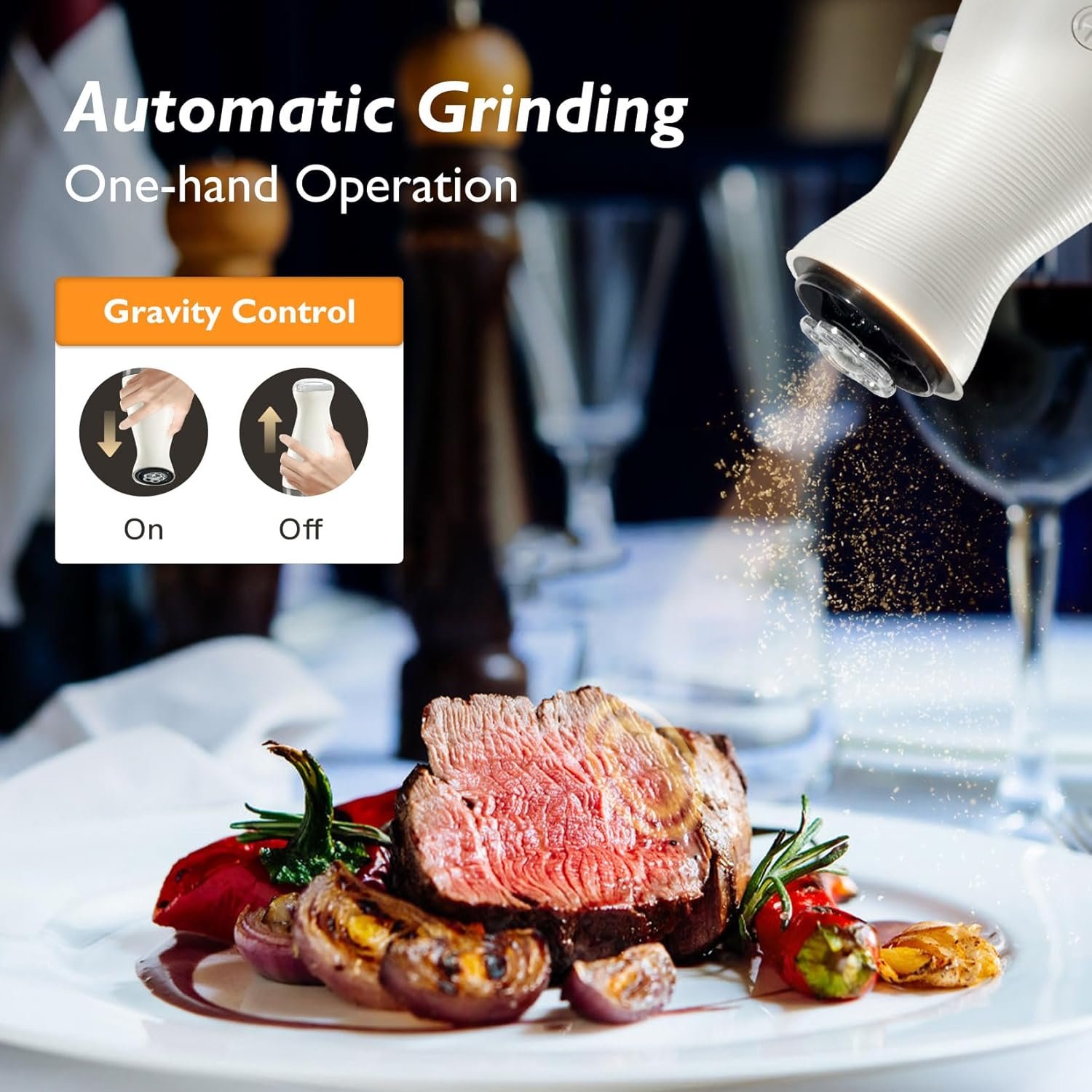 Effortless Gravity Control Pepper Crush – Simplify your cooking with our gravity salt and pepper mill set. No need to press the switch repeatedly – just flip it upside down, and the gravity sensor automatically activates the grinding mechanism. Perfect for quick, making meal preparation fast and easy