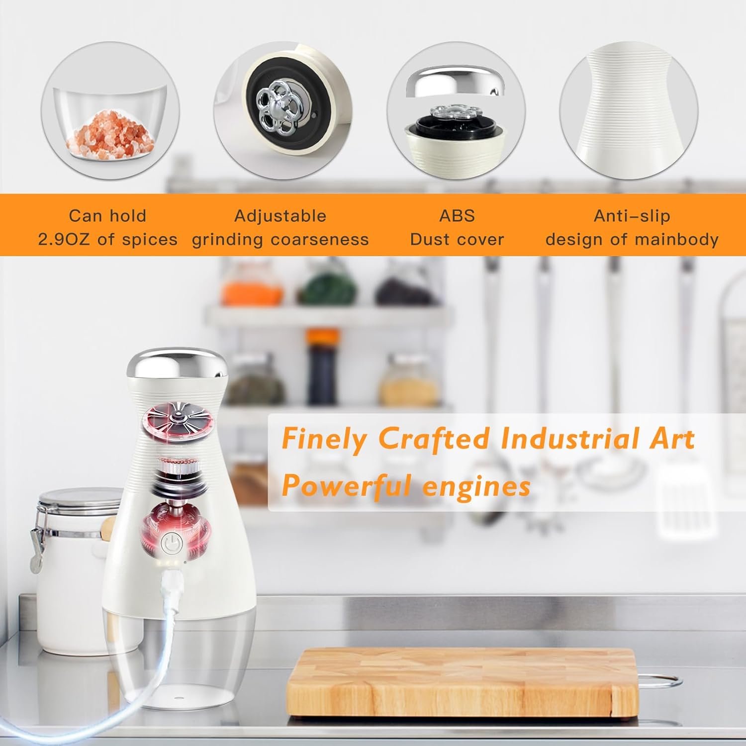 Quiet Yet Powerful Spice Mill – Enjoy efficient seasoning with minimal noise. Our grinders operate at a low noise level (<68dB) and are equipped with an 800mAh battery, providing long-lasting performance without frequent charging. Say goodbye to interruptions in your cooking flow