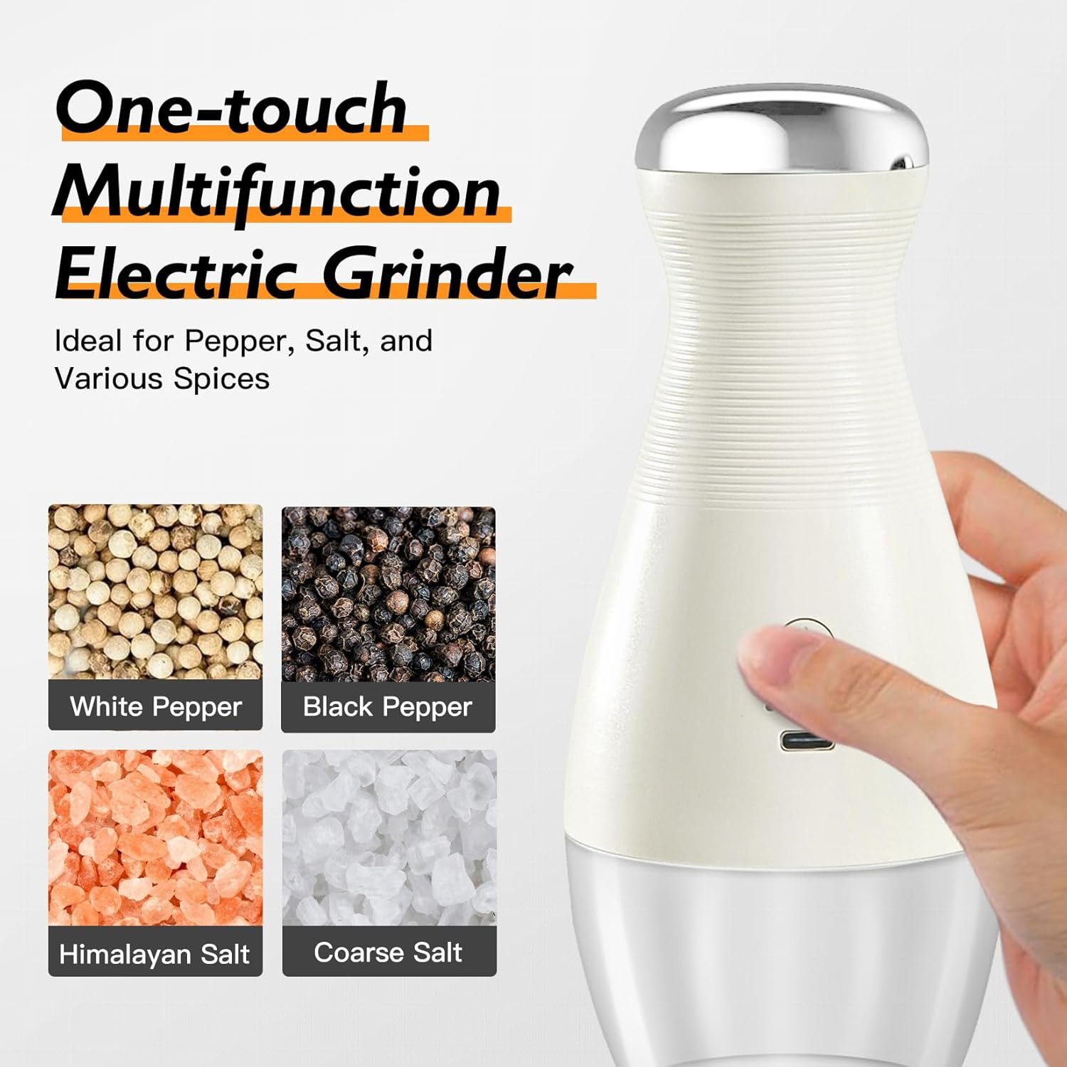 Premium Materials for Durability Electric Grinder – Crafted from thick, shatter-resistant ABS plastic, a transparent acrylic spice chamber, stainless steel grinding rod, and a ceramic grinder core, this set ensures durability and precision grinding every time. The ceramic core prevents clogging and delivers consistent results