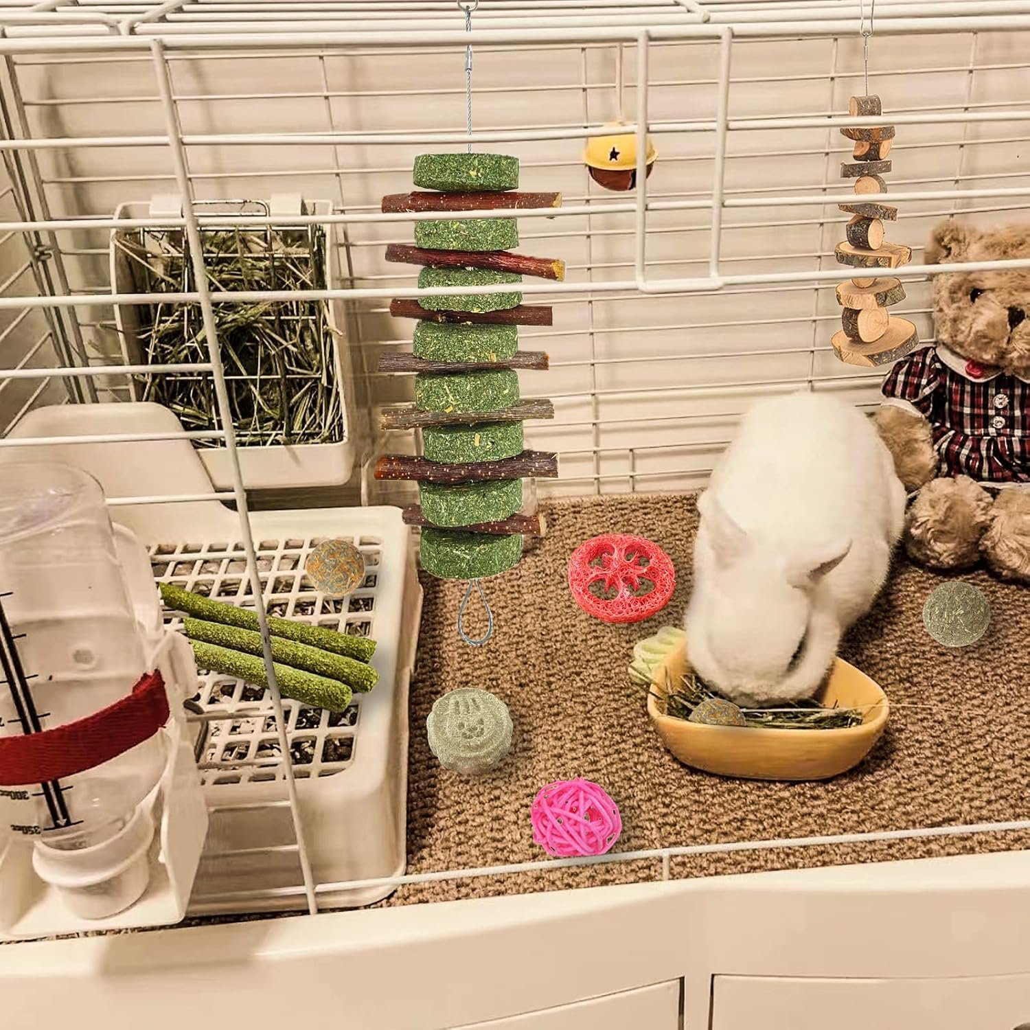 【WIDE USES 】These bunny chew toys can be hang in the cages with hooks,fit for rabbits,bunny, hamsters, guinea pigs, squirrel, rabbits,chinchillas, parrot,, providing more fun for your pets.