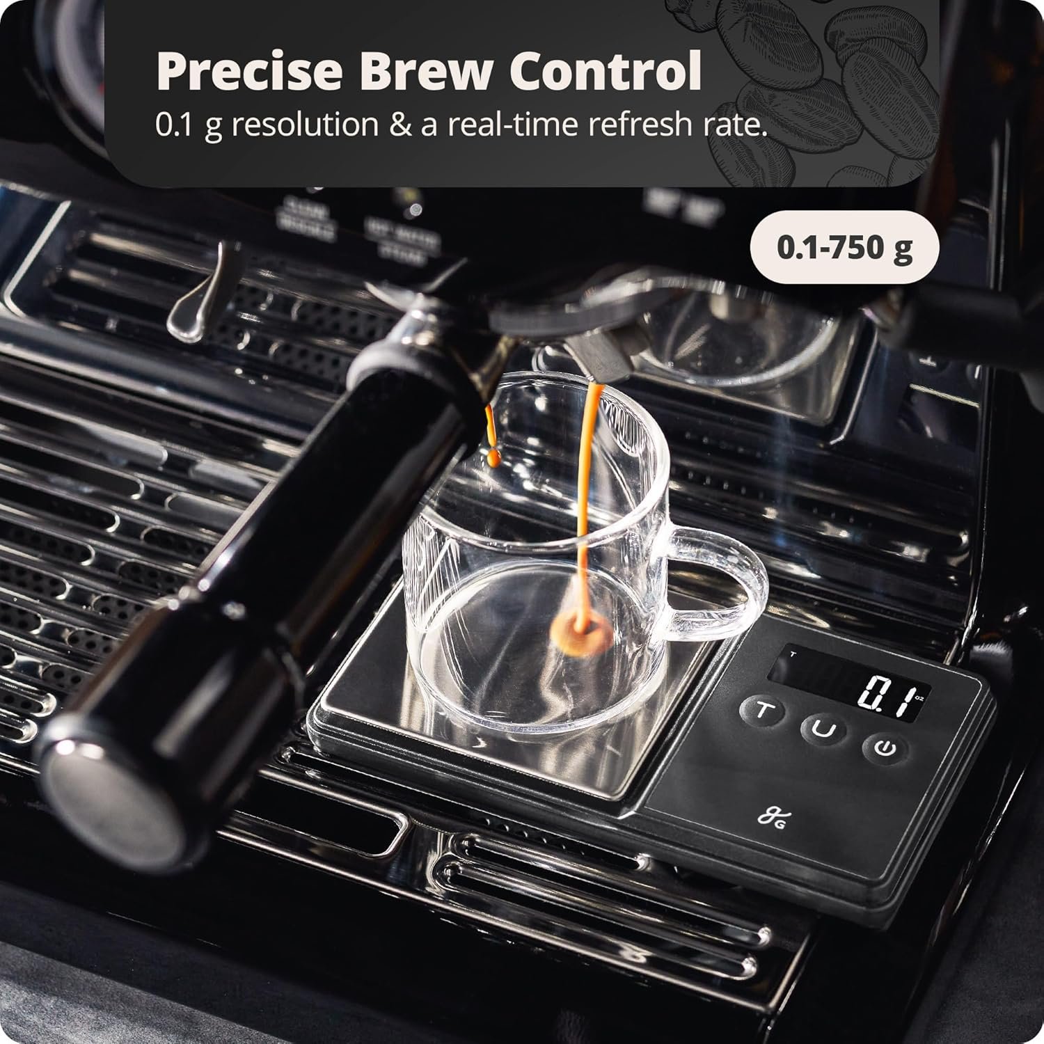 Greater Goods Digital Espresso & Coffee Scale – 750 x 0.1g, Mini Scale with 6 Units of Measurement