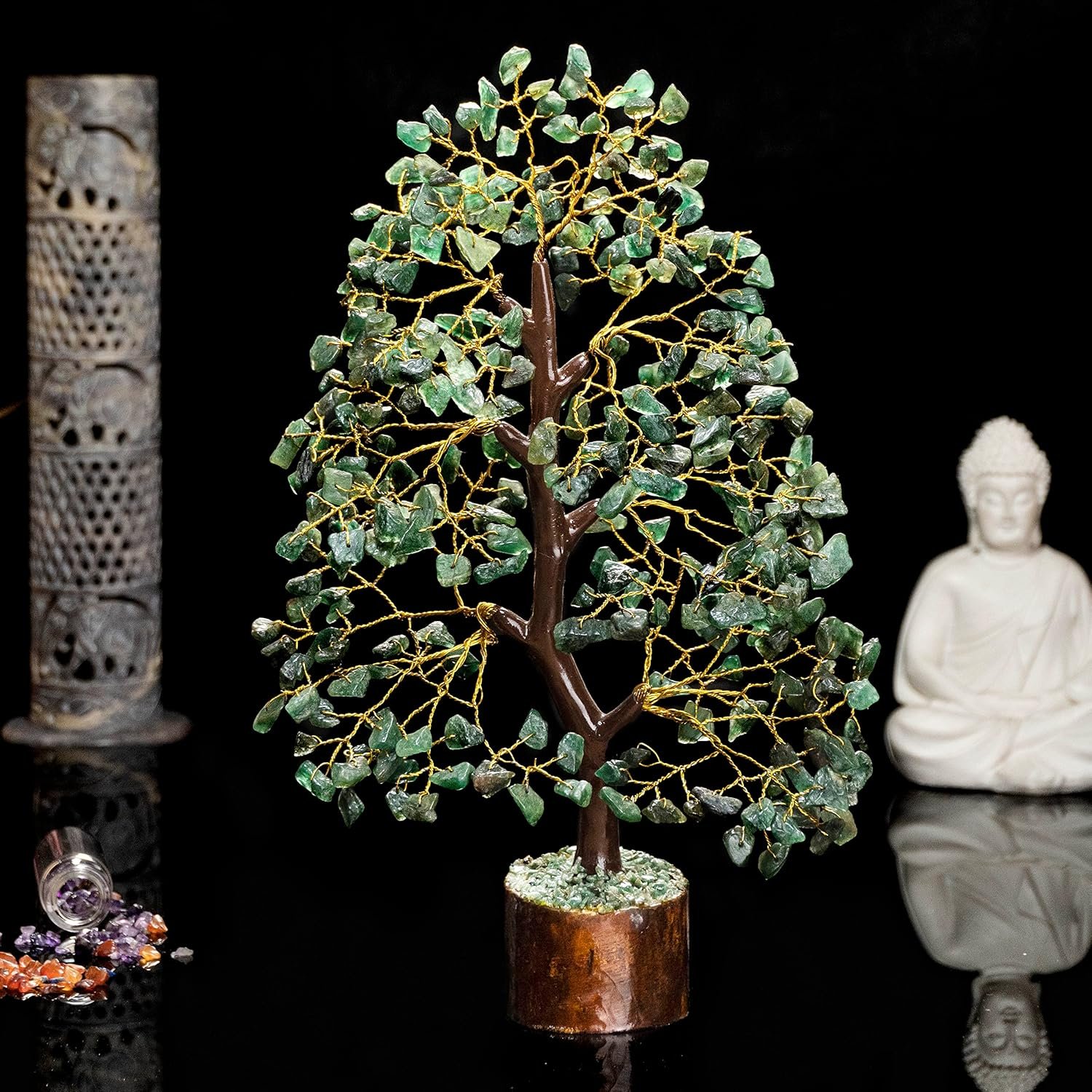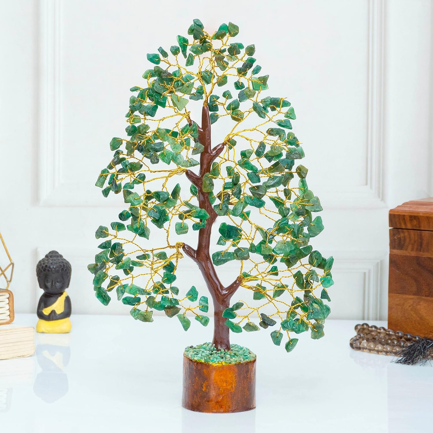 ✨ GREEN AVENTURINE TREE OF LIFE: Handmade Feng Shui Green Aventurine Gemstone Money Crystal Tree (Golden Wire) Size: 10-12 Inch, Gemstone Tree represents self-reflection, prosperity, calmness, balance, optimism, and creativity. Crystals can be used for healing or environmental enhancement, Money tree brings good luck, prosperity, provides positivity and enhances the power of your surroundings.