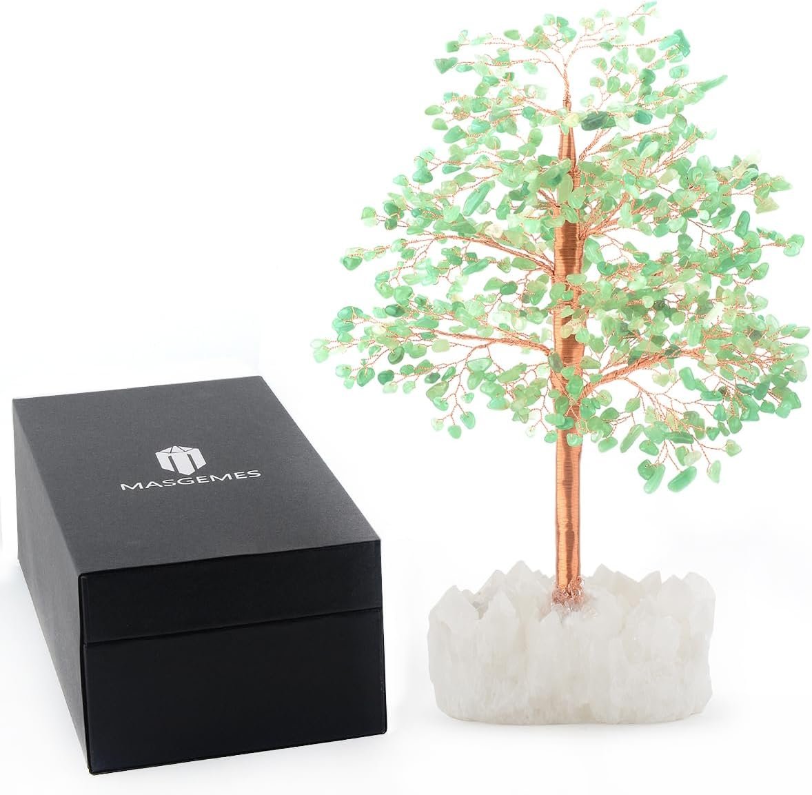 Material: Natural Stone /Amethyst Cluster/Quartz Cluster/Copper wire.Height is approximately 10-11 inches(27-30 cm)(Opened up leaves);Size for Amethyst/Quartz Cluster Base is approximately 3-4 inches (10-12 cm);Total Weight:3 LB/pc;Our MASGEMES Crystal bonsai money tree is handmade of natural Gemstone and hand selected with 728 high energy gem-grade Crystals which hand -twisted with copper wire. It’s also called “Wishing Tree”, This Gemstone Tree is Good for Home Decor with Chakra Crystal Healing,Improve career luck as well as an excellent Feng Shui for those who are in managerial positions . Put it in your living room or office. It will help you attract wealth and prosperity, success, and all good things.These Crystal Trees are furnished on a Amethyst Cluster Base. Since it is all about natural material when it comes to the tree base, each and every one is unique in terms of shape, color and size.Tree of Life:Our Gemstone Crystal Tree comes with a Gift Box, it’s a perfect gift for every occasion. It’s A good gifts for you, your families and your friends or someone important in you life.