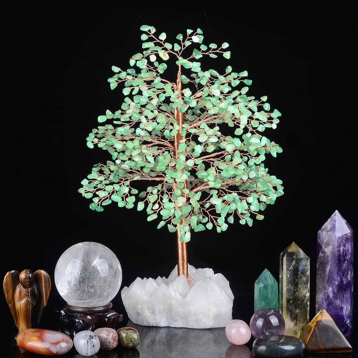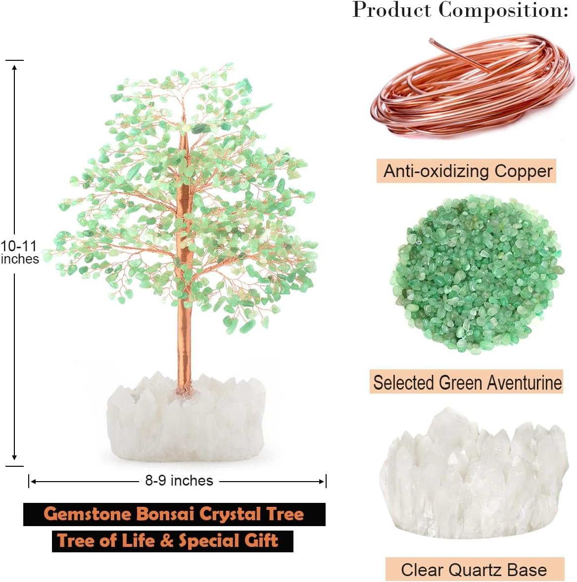 PRODUCT SIZE&COLOR: This Crystal Tree stands about 10-11 inches tall. The width from left to right is approximately 8-9 inches, and the depth from front to back is approximately 5 inches.Due to photography reasons, there may be color variations between the gemstone tree and the actual item. The colors in photos can be affected by lighting, photography equipment, and post-processing, which may result in differences between the presented colors and the actual appearance of the item.