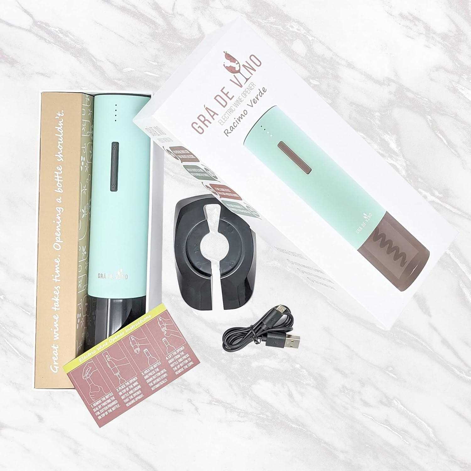 Be the first to review “Green Electric Wine Opener- Stainless Steel, Rechargeable, Automatic Corkscrew, Stand and Foil Cutter Included. Racimo Verde.”