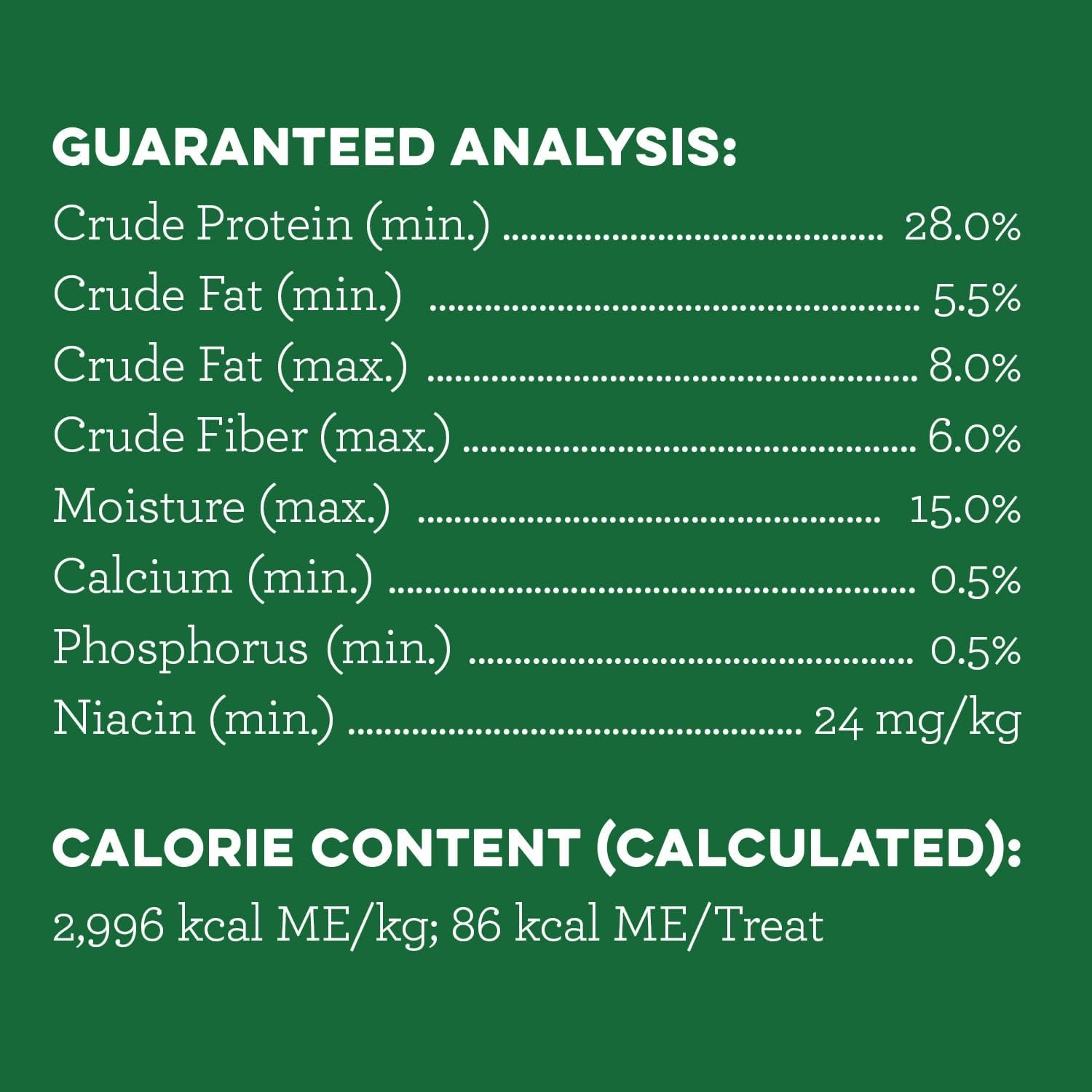 One GREENIES Original Dental Treat a day is all it takes for clean teeth, fresh breath, and a happy dog. Your dog can’t wait to sink their teeth into these delicious, original-flavor dental dog chews because they feature a delightfully chewy texture that fights plaque and tartar. Irresistibly tasty and incredibly powerful, GREENIES Treats for Dogs are vet recommended for at-home dental care. Best of all, these natural dog treats are the perfect breath freshener to help fight bag dog breath and are made with highly soluble ingredients that are safe and easy to digest. Give your canine the mouth-wowing treat that helps promote their oral hygiene and overall health with GREENIES Dog Treats. Natural Dog Treats Plus Vitamins, Minerals and Other Nutrients.