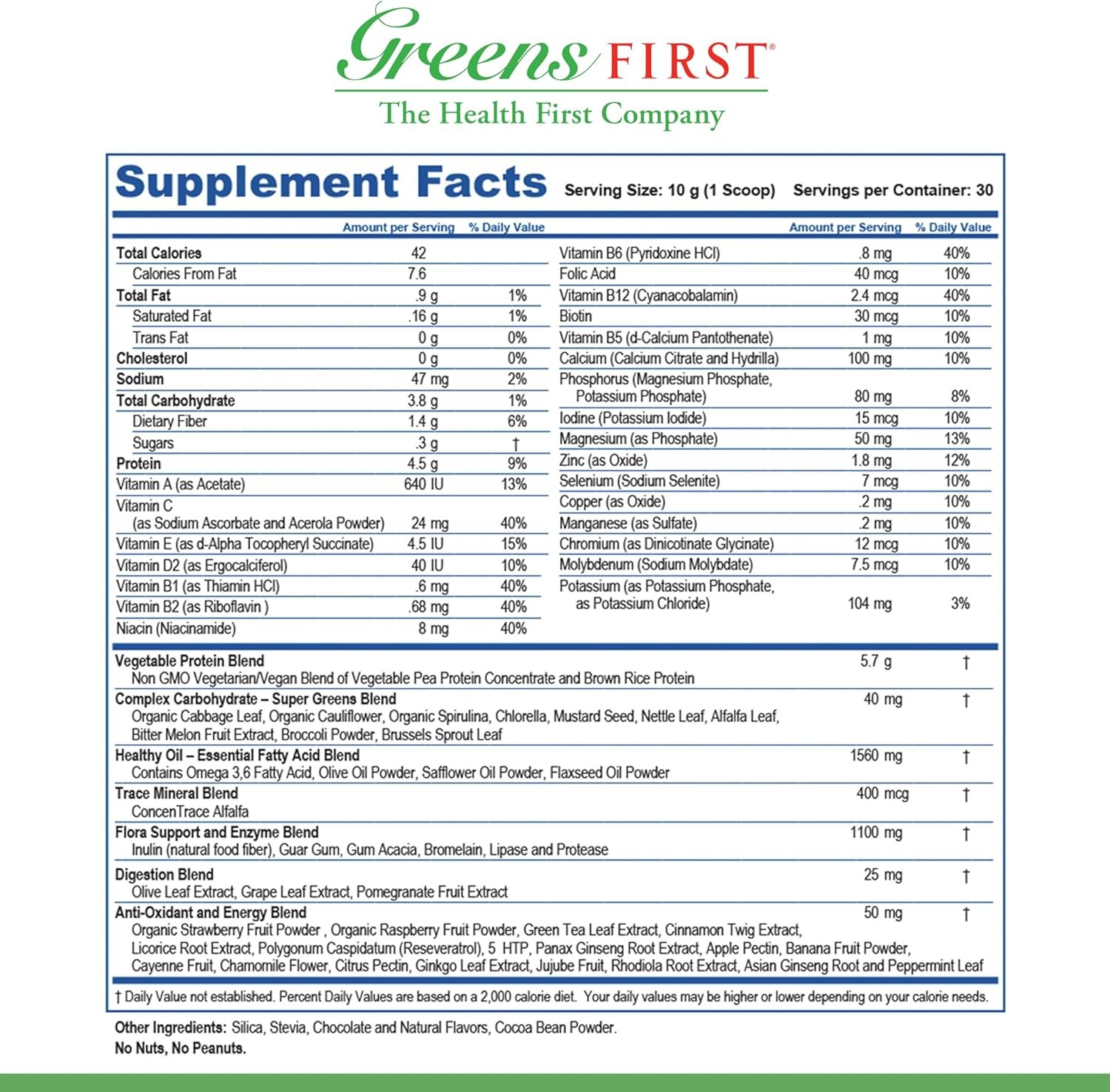 Balanced Macronutrients. Greens First Boost is formulated with a precise blend of fibrous carbohydrates sourced from vegetables and essential healthy fats from olive and flaxseed oils, promoting sustained energy and satiety.
