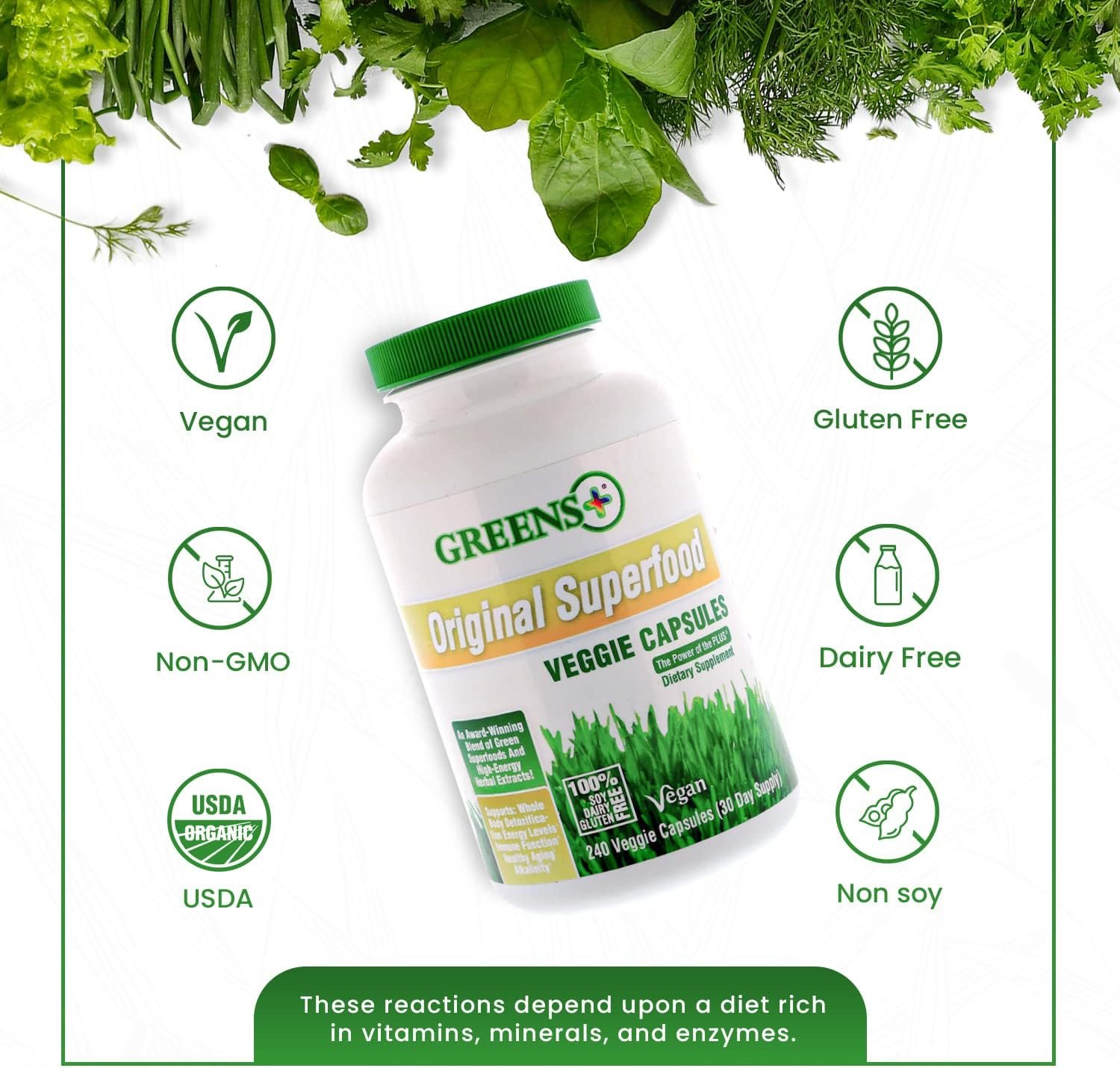 𝐕𝐞𝐠𝐚𝐧 𝐅𝐫𝐢𝐞𝐧𝐝𝐥𝐲: Packed with powerful nutrients, fibers, and antioxidants, our greens plus veggie capsules are non GMO, soy, dairy, and gluten free, a great addition to your daily routine.