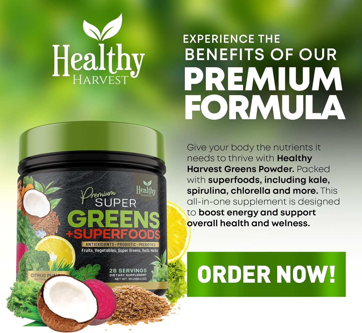 Boosts Digestive Health: Enhanced with probiotics, our superfood supplement aids in better digestion and nutrient absorption.