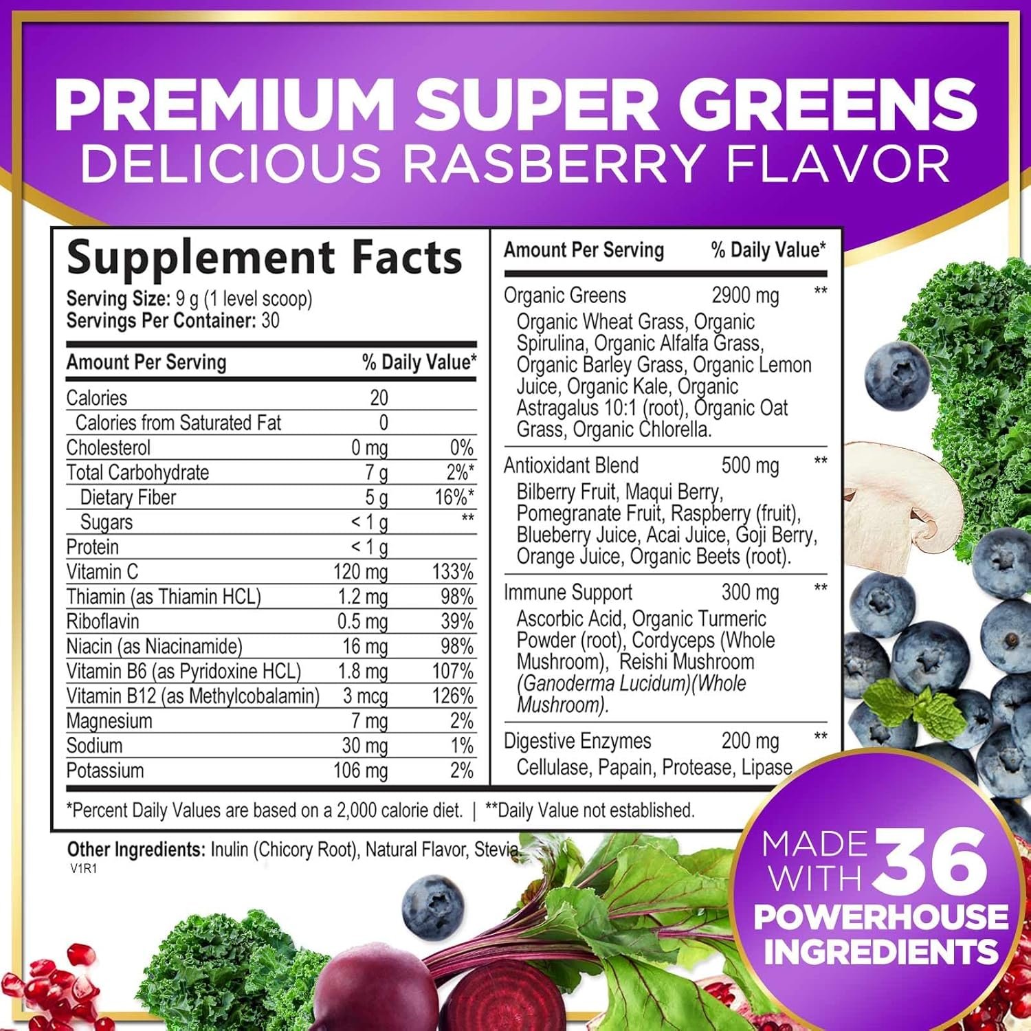 SUPPORTS DIGESTION & WELLNESS: This superfood powder is formulated with digestive enzymes to support gut health making it a perfect addition to your daily routine; Enjoy the benefits of digestive health support with every sip of your greens drink powder