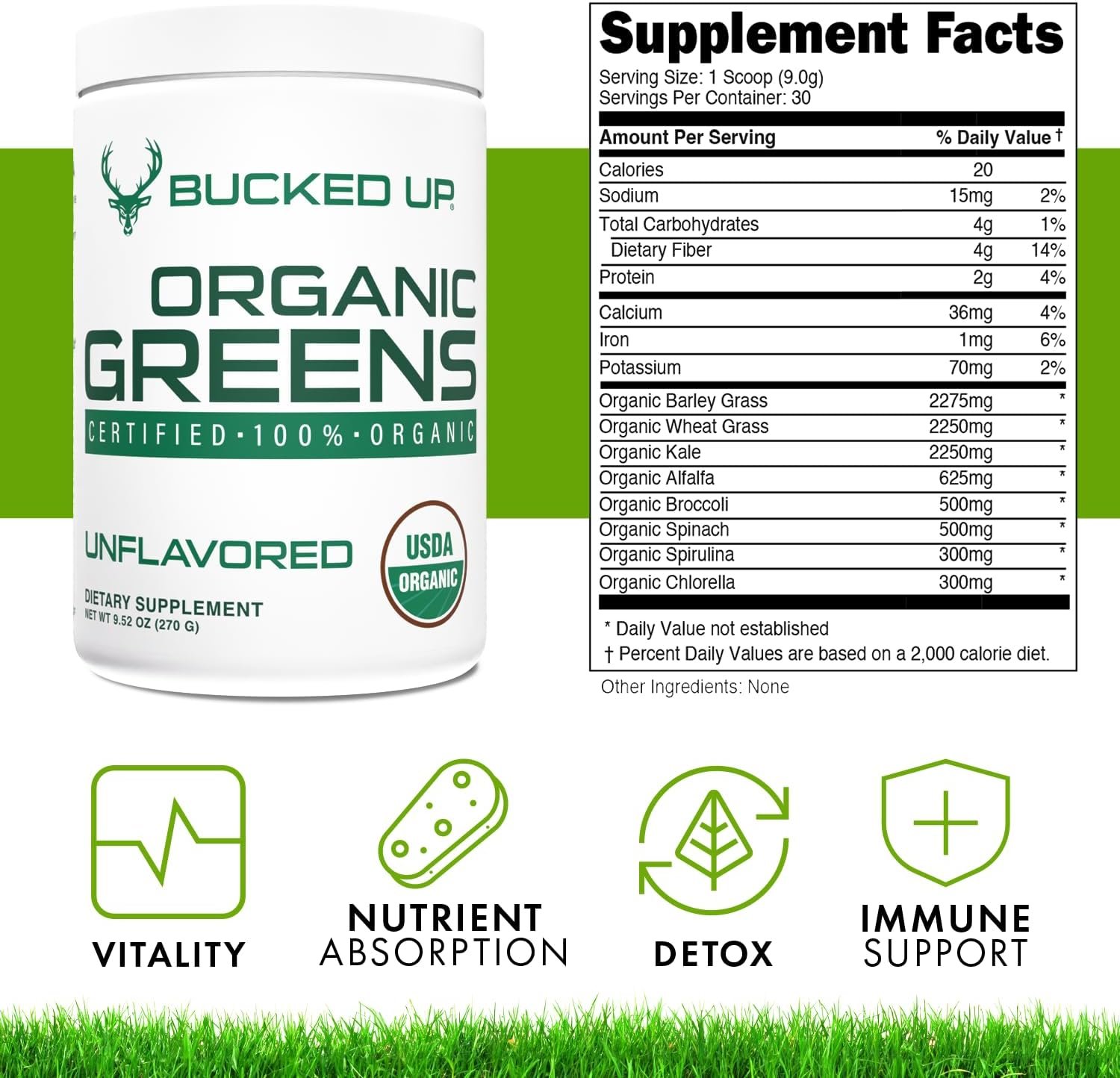 100% CERTIFIED ORGANIC – Bucked Up Organic Greens are USDA Organic and prepared in a GMP(Good Manufacturing Practice) facility. These ingredients are of the highest quality on the market.
