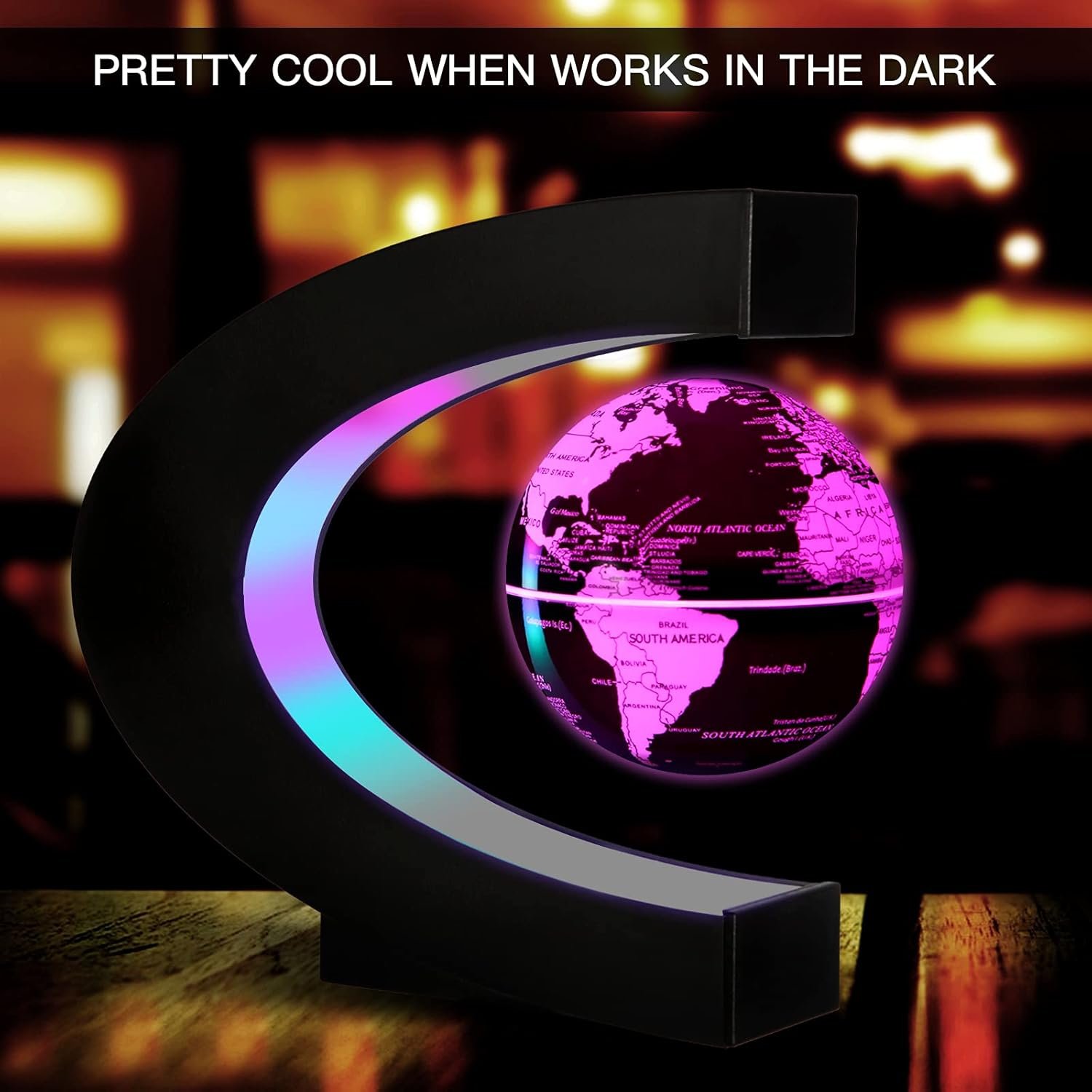 3.35 Inch Multi Color lights Changing Magnetic Levitation Floating World Map Globe, It’s pretty cool when it works in the dark .Your excellent desk decoration choice