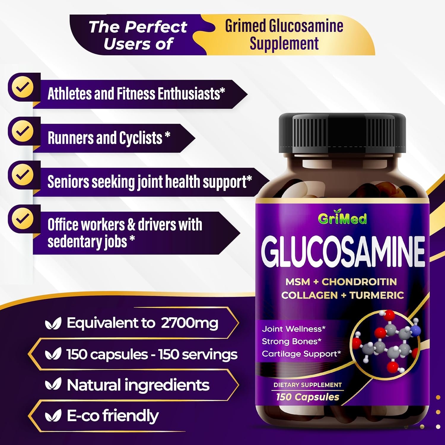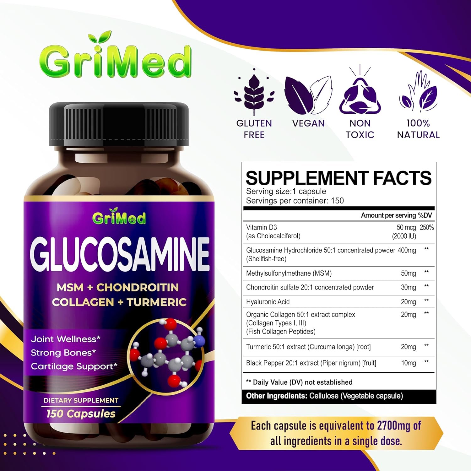 Exceptional Value in Every Capsule: GriMed is dedicated to providing outstanding value with its top-tier products. Every Glucosamine bottle comes packed with a substantial 150 capsules, ensuring a complete 5-month supply. However, that’s not the only remarkable feature – this supplement also boasts an incredible 12,000 mg of concentrated herbal powder per serving, ensuring optimal effectiveness with every dose.