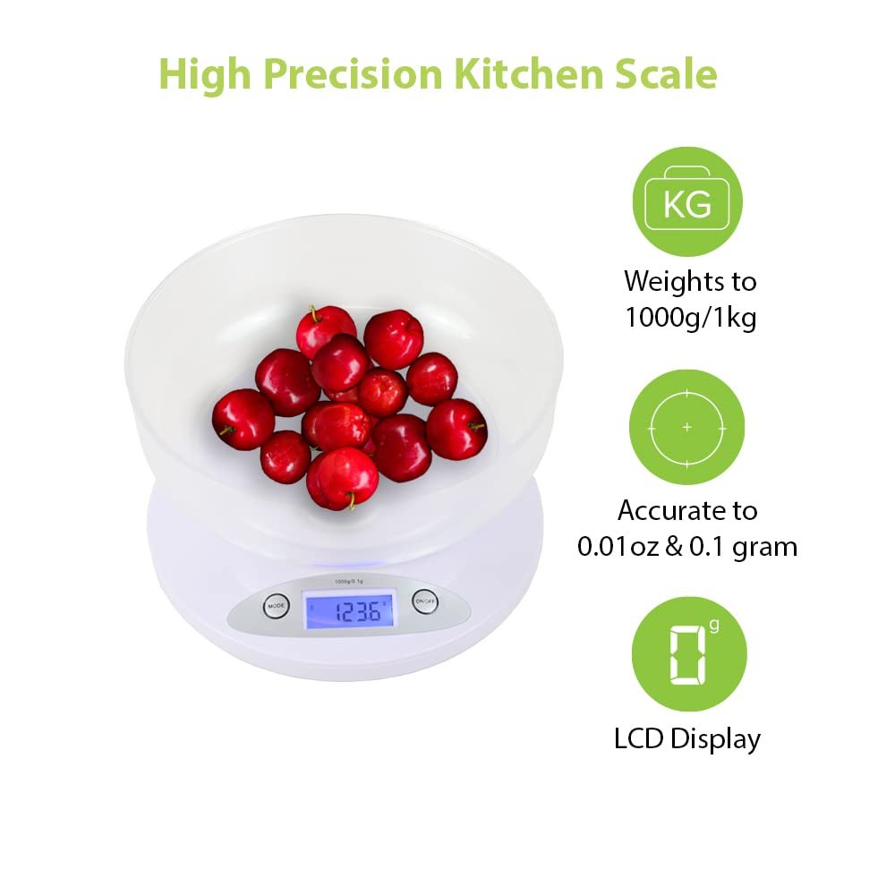 HIGH WEIGHT CAPACITY 1000g – With such a large capacity you will always be able to measure out your serving sizes no matter how large. Great baking scale to measure out precise cooking ingredients