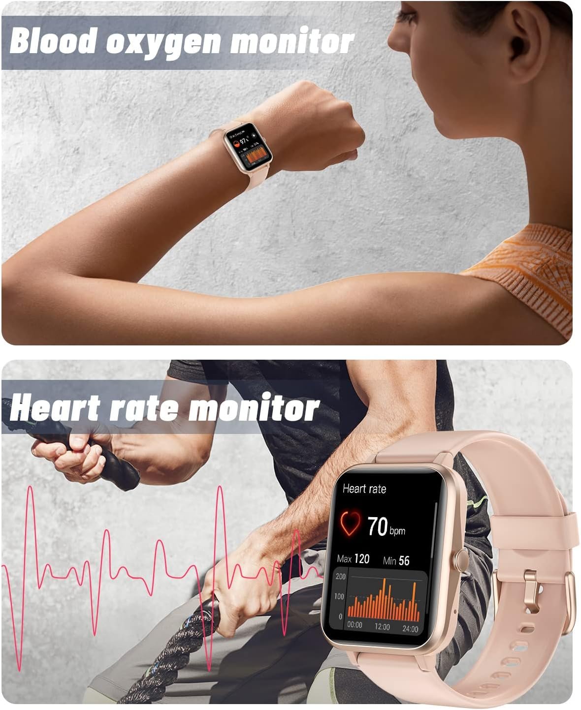 【Heart Rate/Blood Oxygen Monitor & Sleep Tracker】- This health tracker watch will auto monitor your heart rate and sleep quality all day. You can also use it to monitor your real-time blood oxygen saturation. By connecting the smartwatch to your phone, the app will provide you the detailed heart rate chart and comprehensive analysis of your sleep quality to help you stay active and stay healthy.