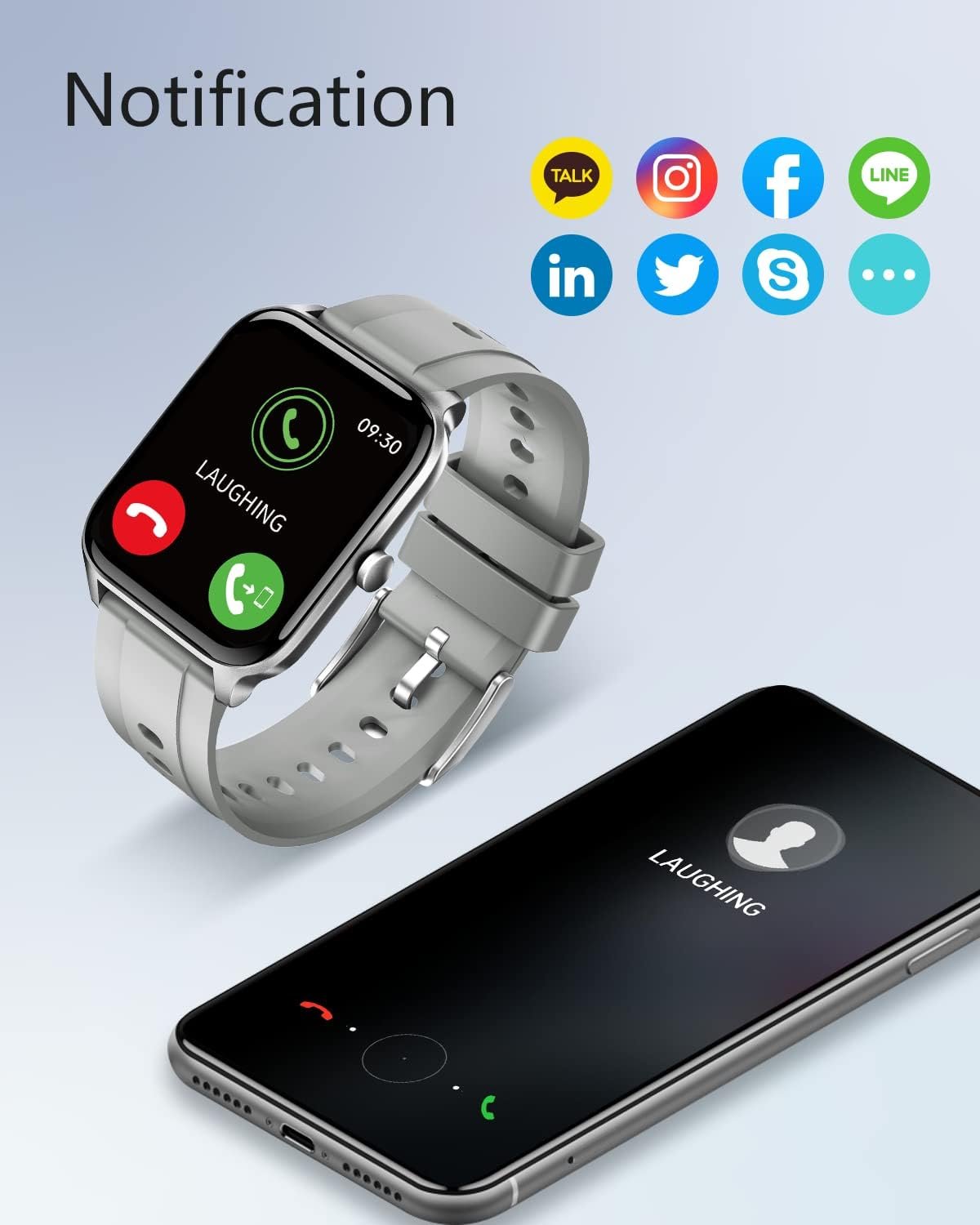 This smartwatch has abundant reminders, such as calls, email, text and other 22 kinds of social media Apps (WhatsApp, Instagram, Messenger, Twitter, etc.), and you can read the messages directly on the watch.